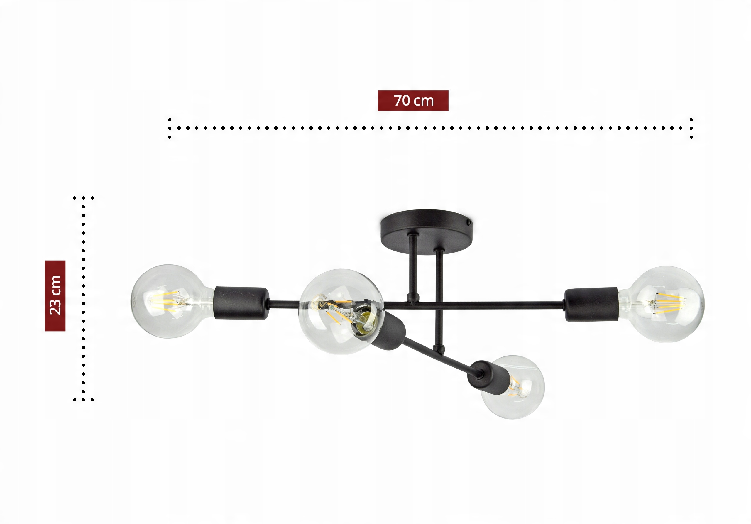 Rozpiętość z żarówkami o wysokości 10cm: 70cm