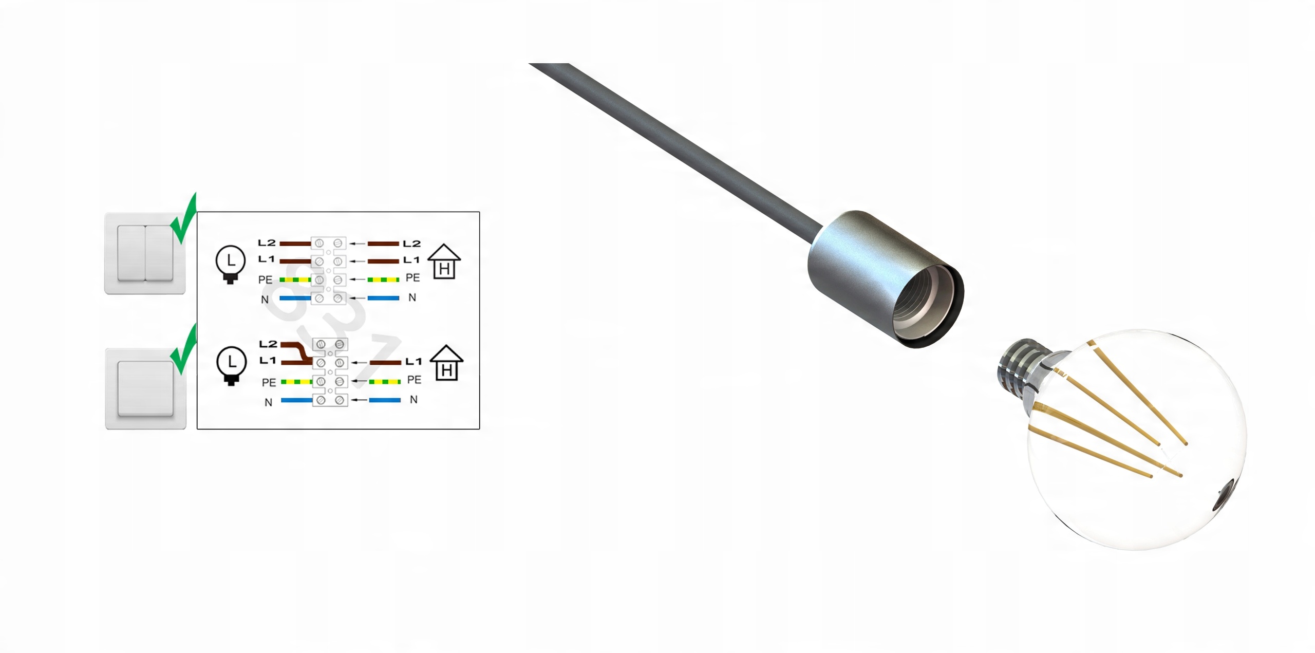 Zestaw nie zawiera żarówek oraz kołków rozporowych.