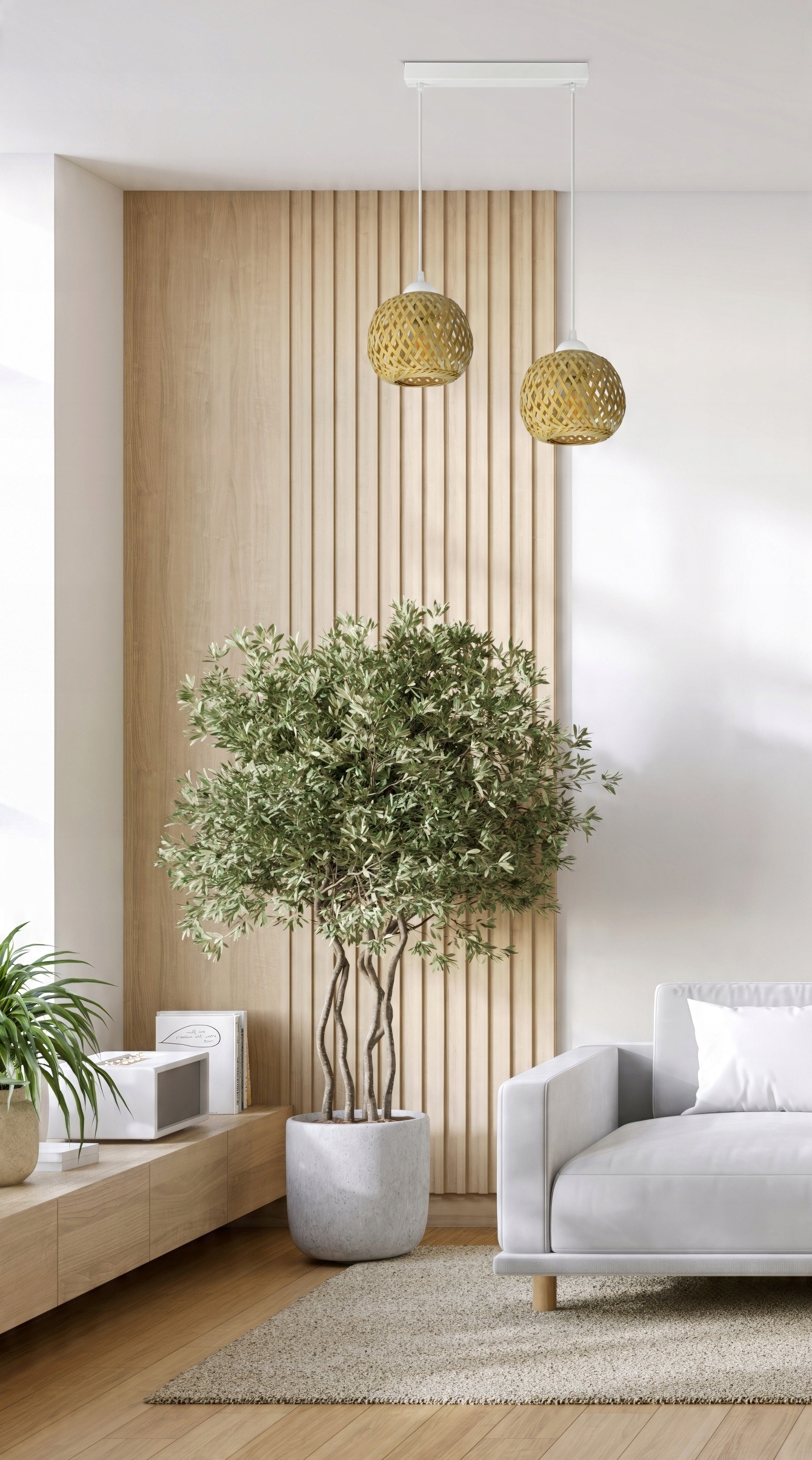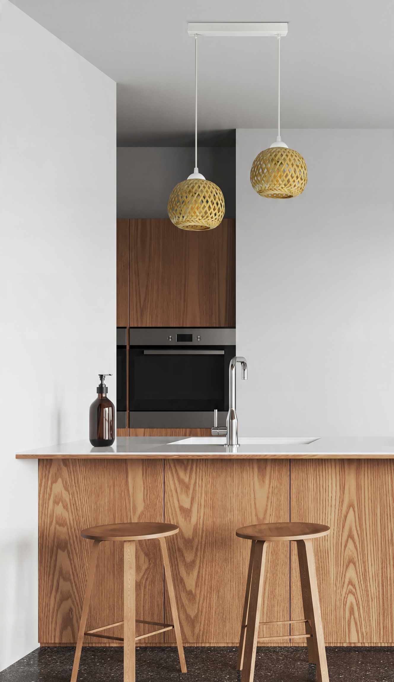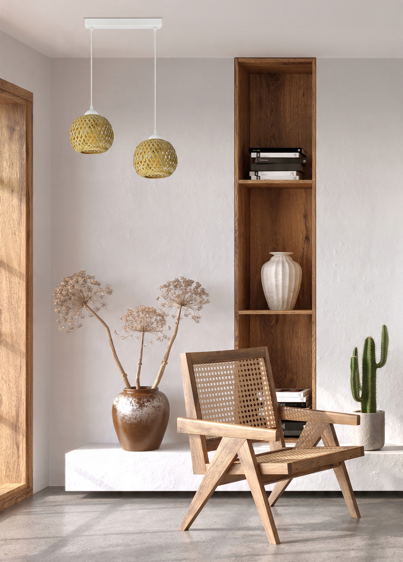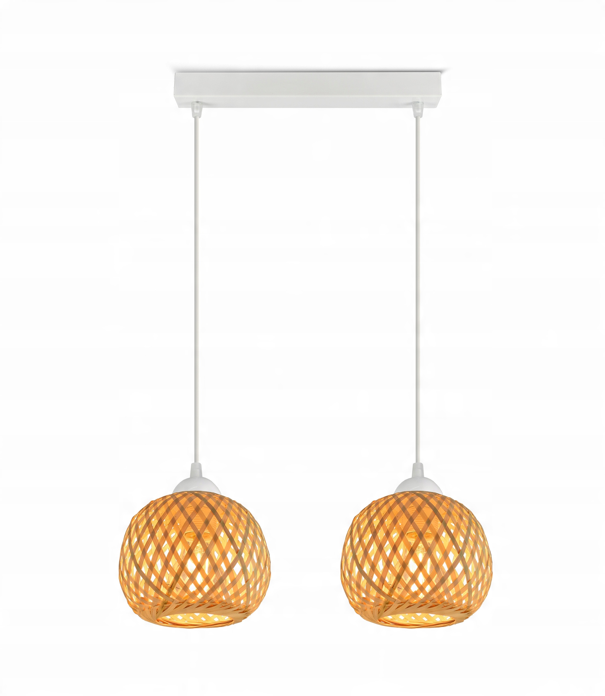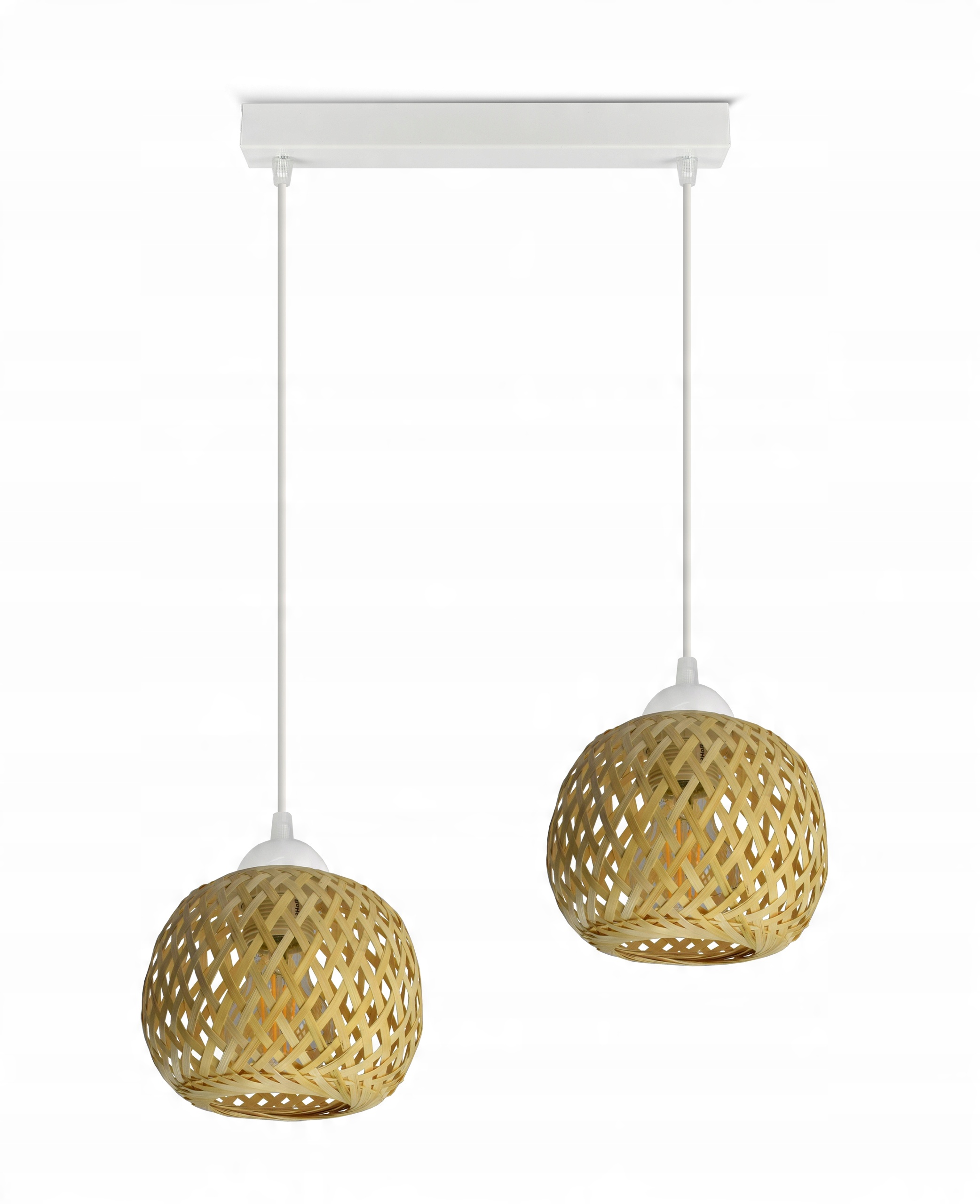 Lampa Sufitowa Wisząca Bambusowa Pleciona BOHO Naturalna 583-BZ2 LED Biała