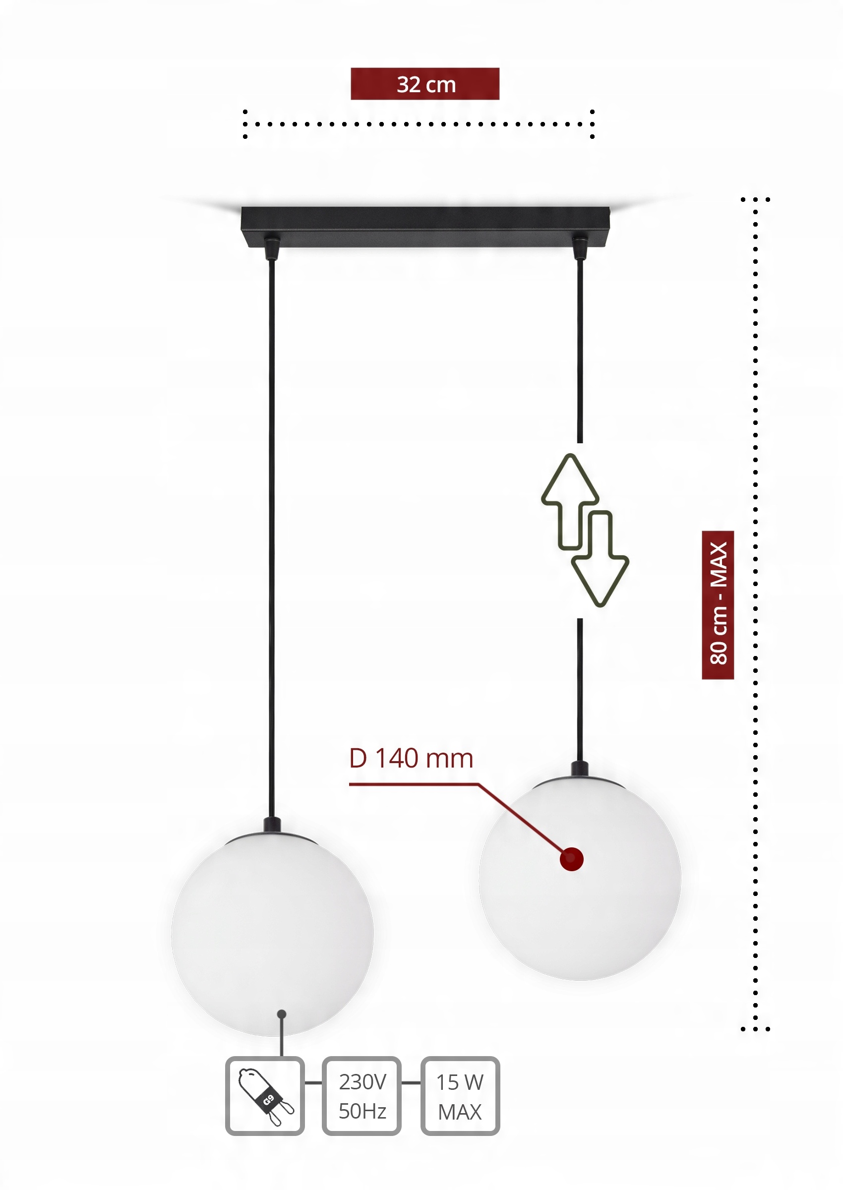 ✅ Wysokość kloszy regulowana do max 80 cm