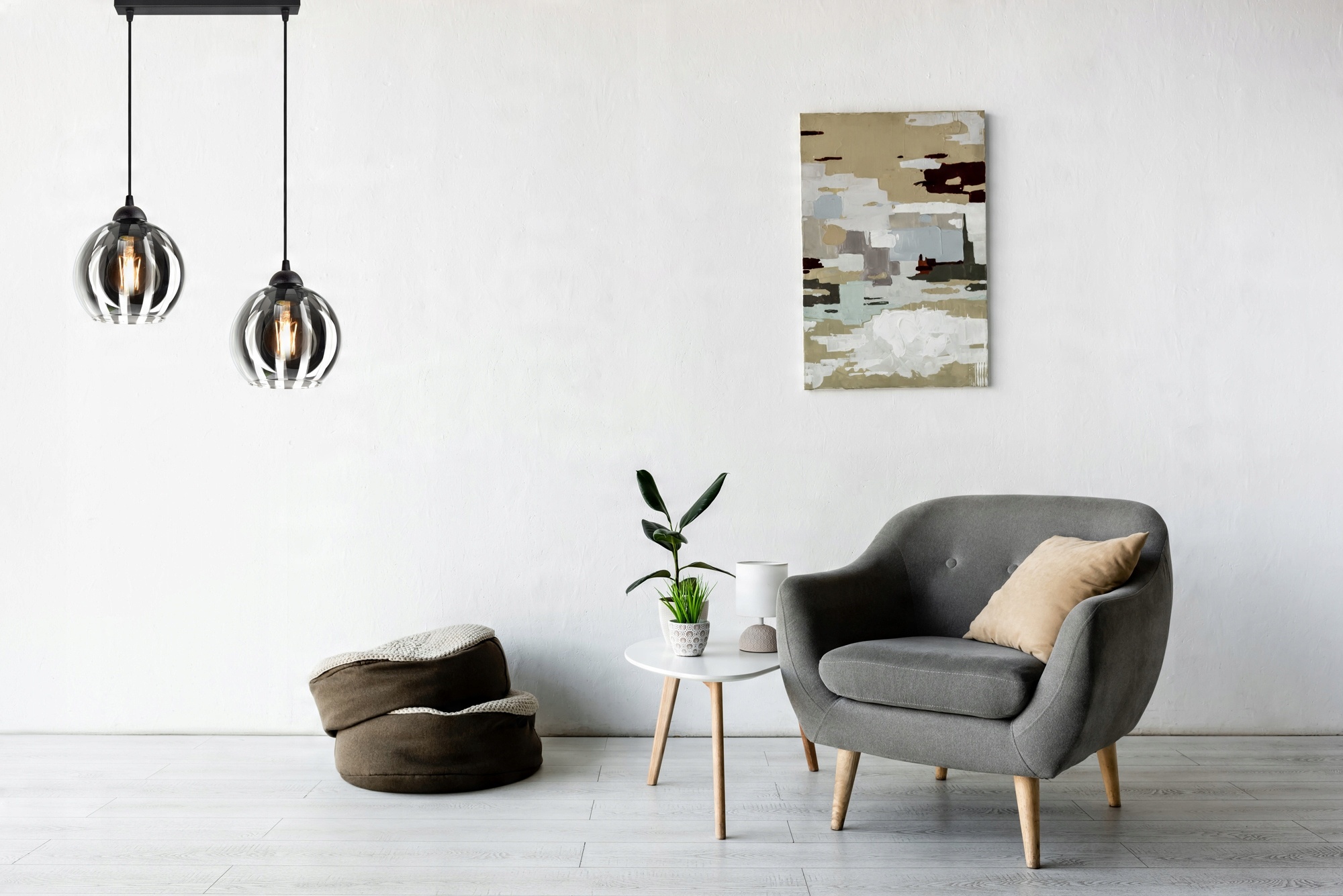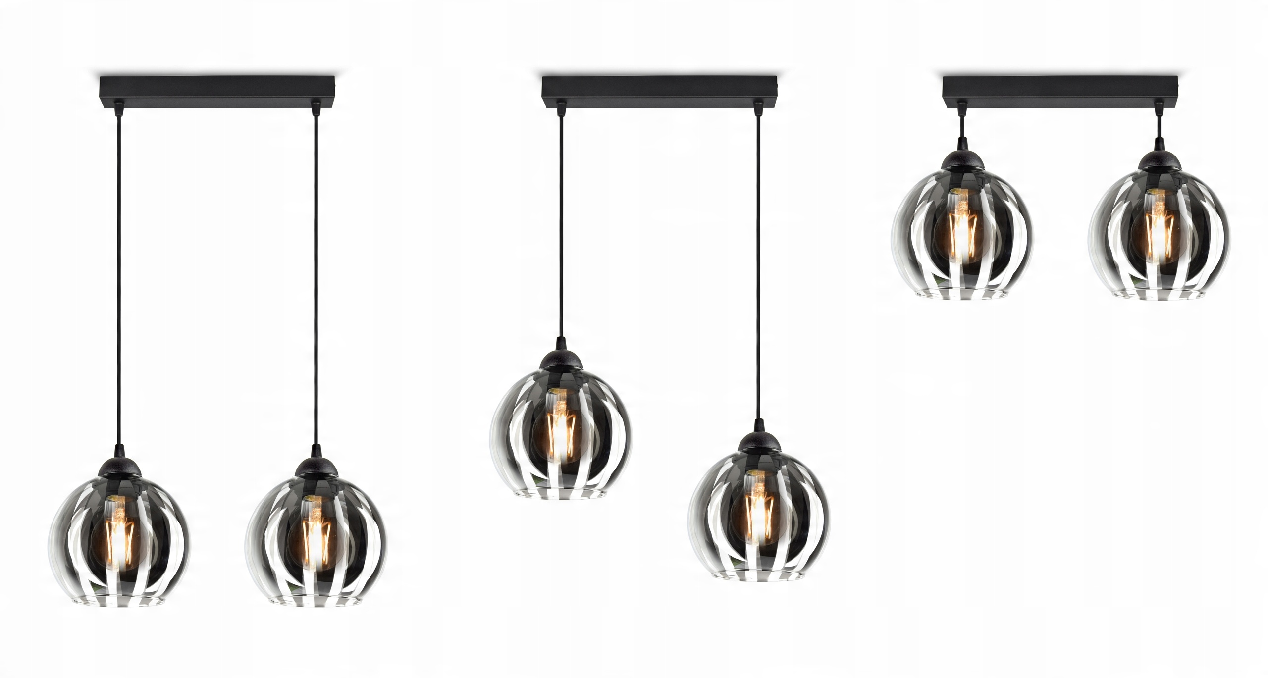 Czarna konstrukcja lampy połączona ze szklanymi kloszami w bardzo modnym kolorze to świetne połączenie w nowoczesnych wnętrzach.