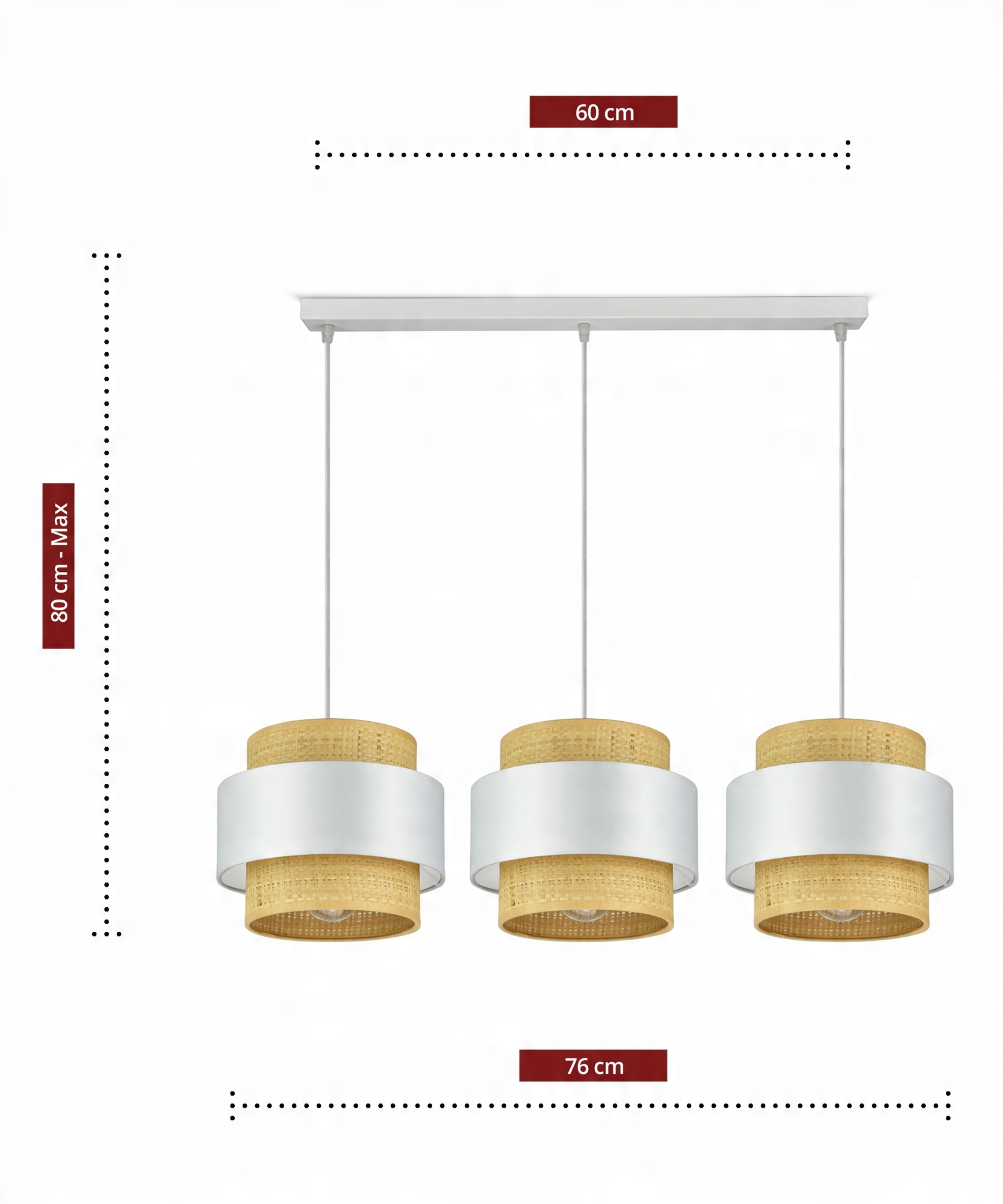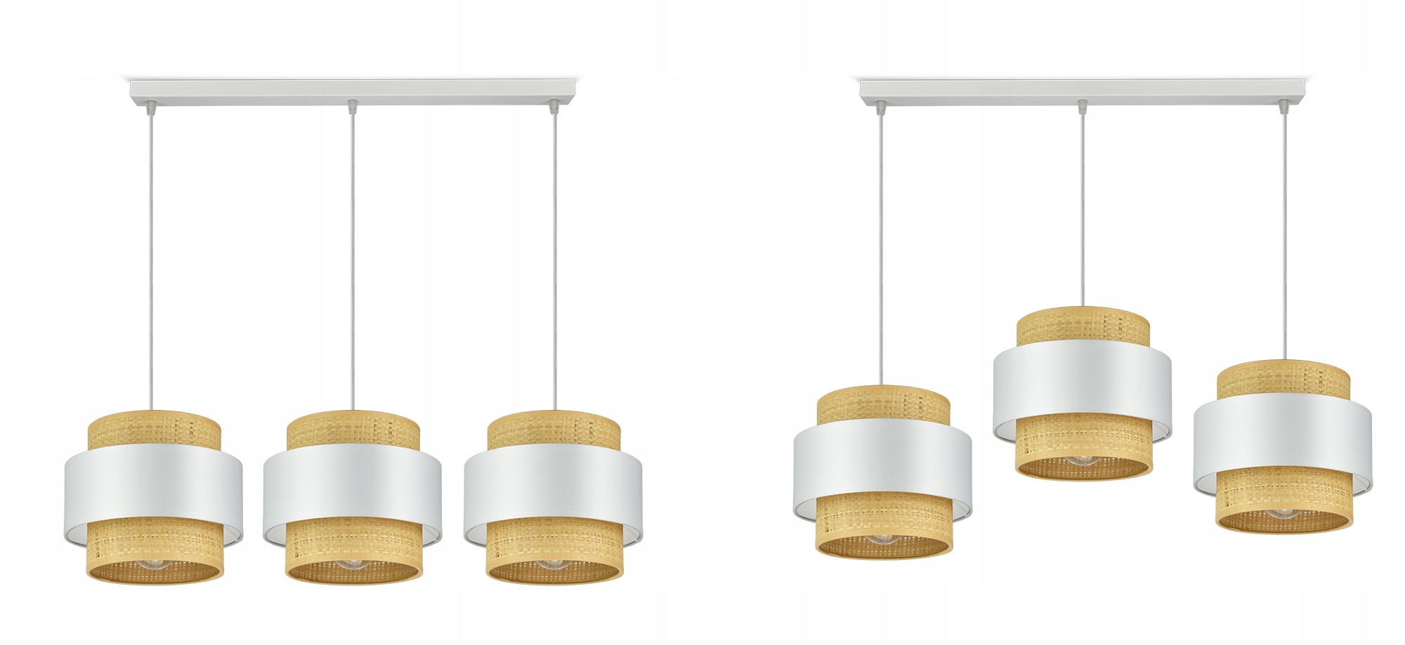 ✅ Modna kolorystyka: Biel łączona z ciepłym rattanem wpisują się w jeden z głównych trendów w oświetleniu.