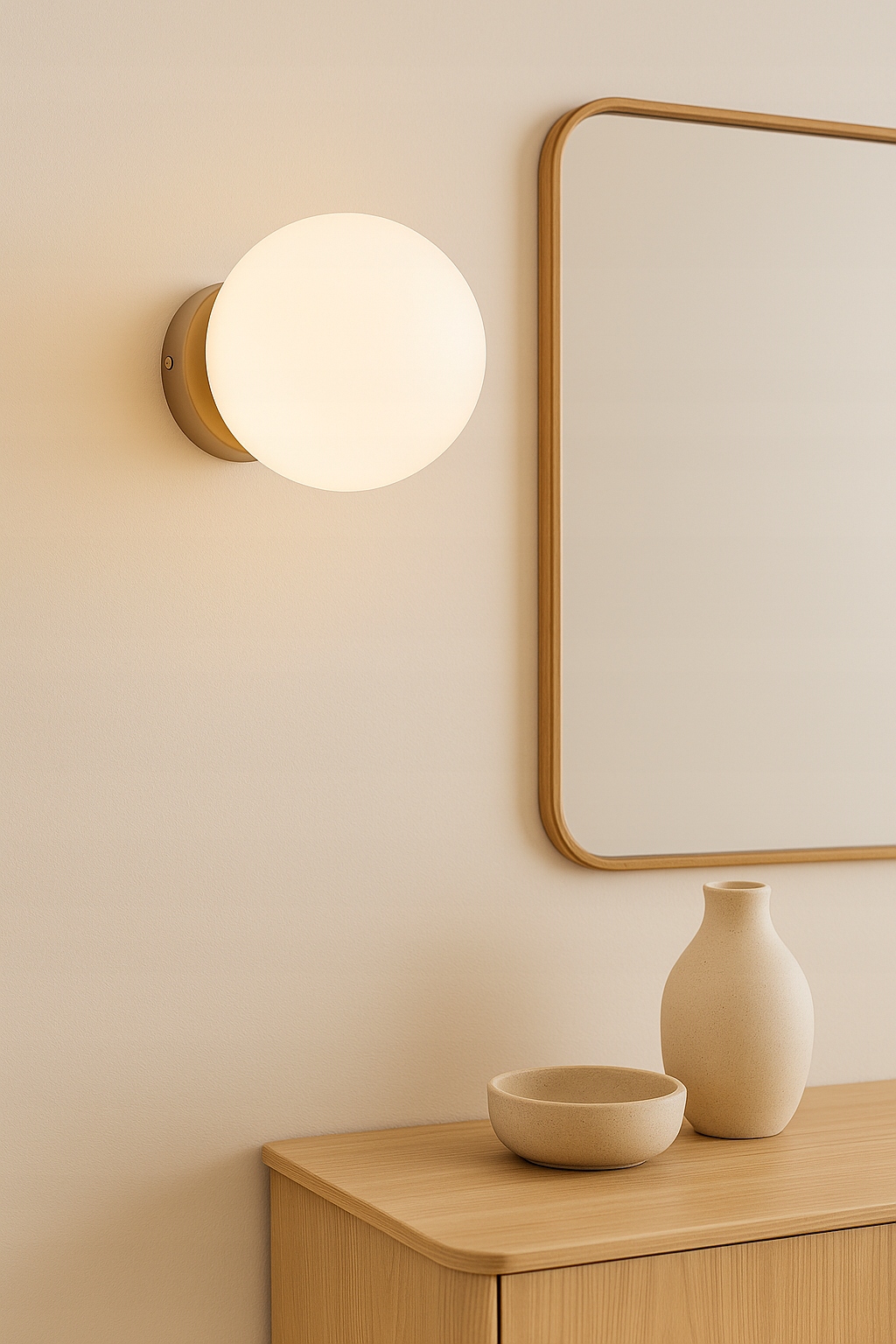 Dzięki swojej neutralnej kolorystyce i nowoczesnej, ale ciepłej stylistyce, kinkiet doskonale wpisuje się we wnętrza w stylu: