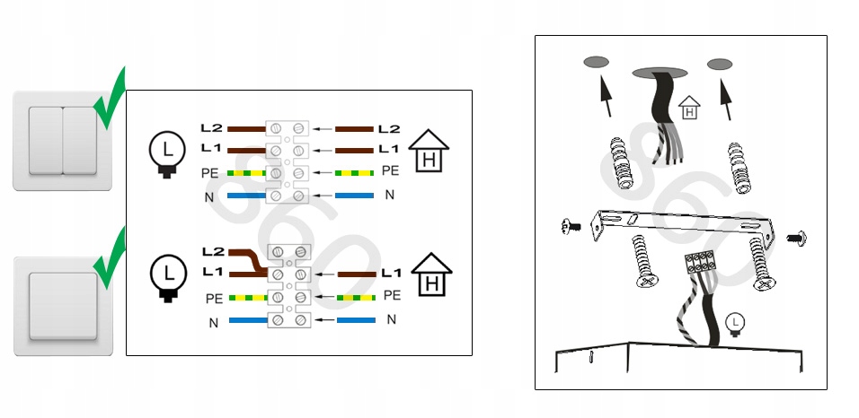 Zestaw nie zawiera żarówek ani kołków rozporowych (należy dobrać odpowiednie do sufitu)