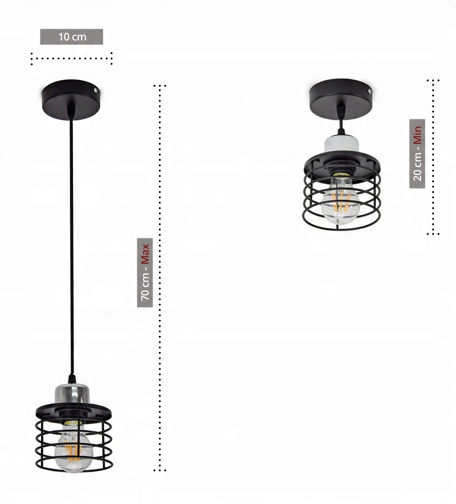 - Wymiary: Wysokość całkowita max 70 cm , średnica podsufitki: 10 cm,
