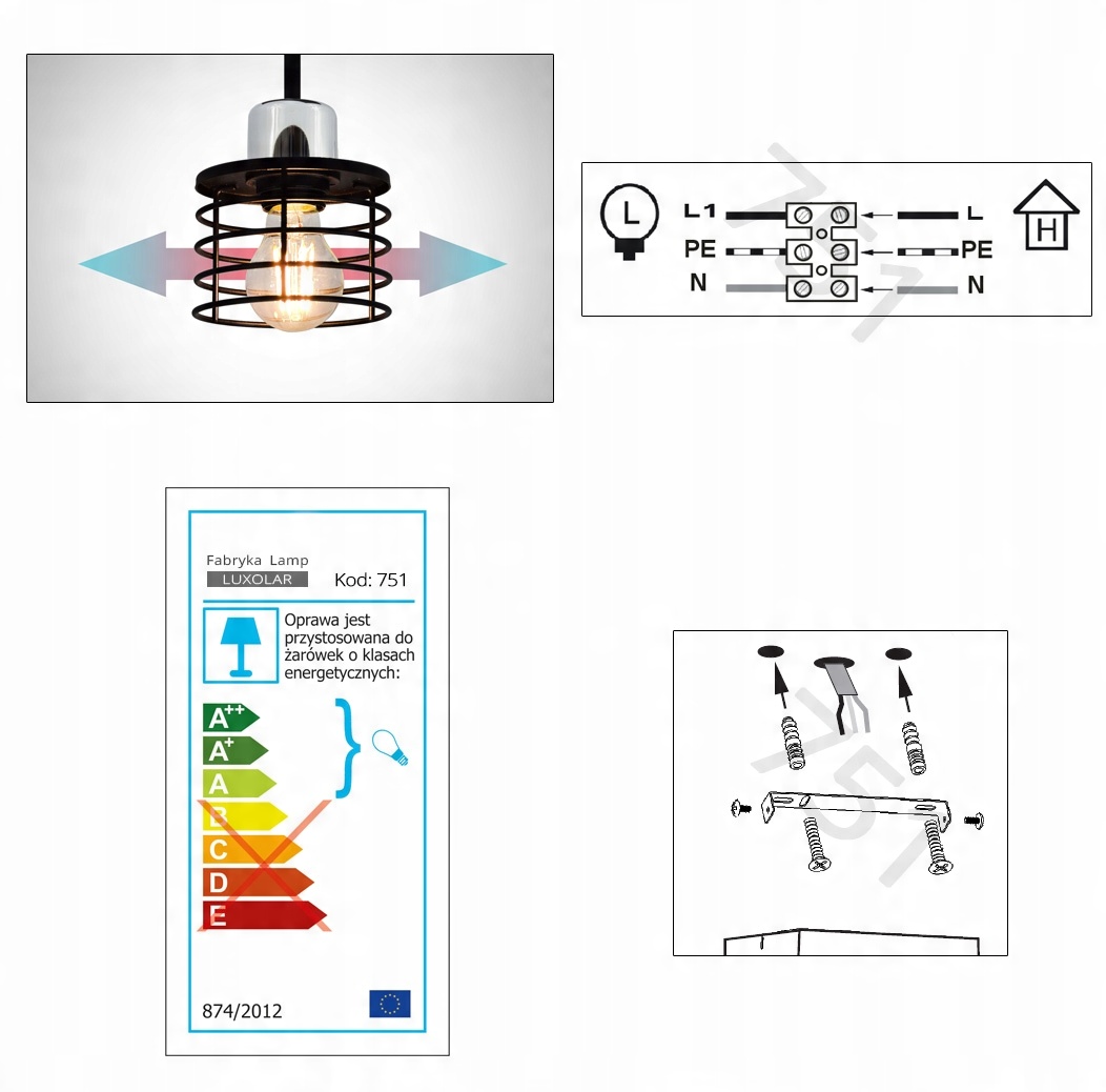 - Lampa obsługuje wszystkie żarówki z gwintem typu E27 do max 60 watów.