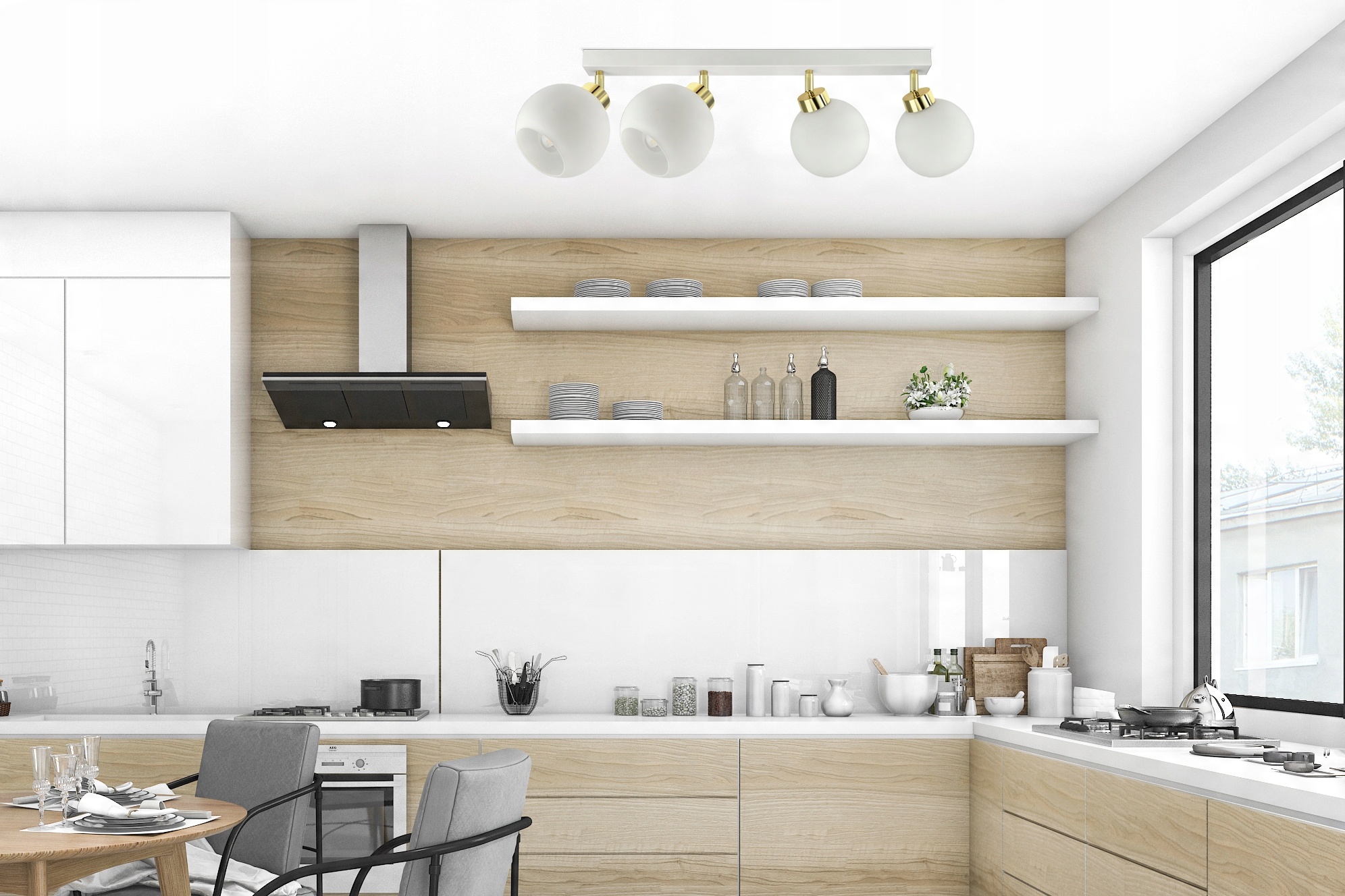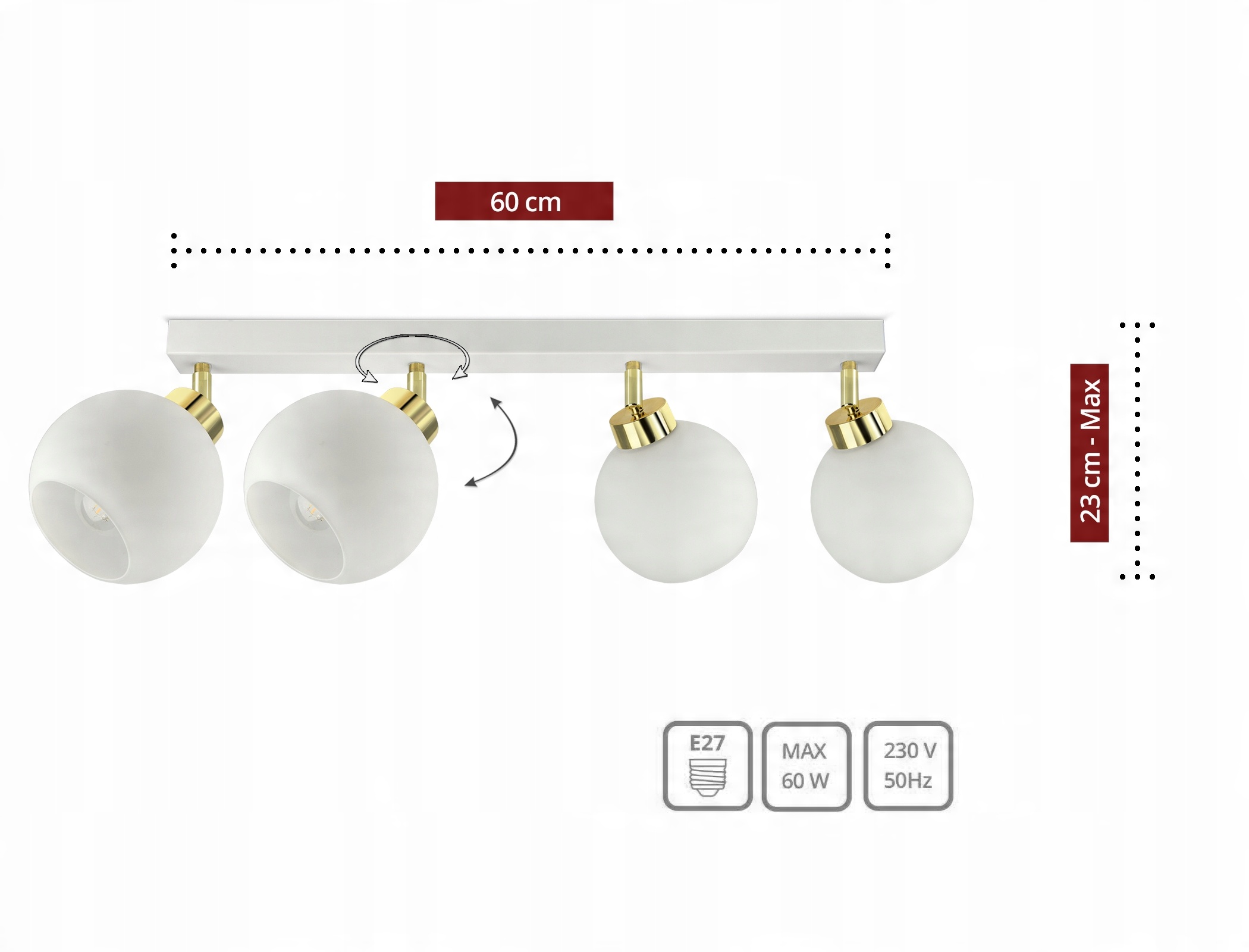 ✅ Lampa wyposażona w szklane klosze w kształcie otwartej kuli.