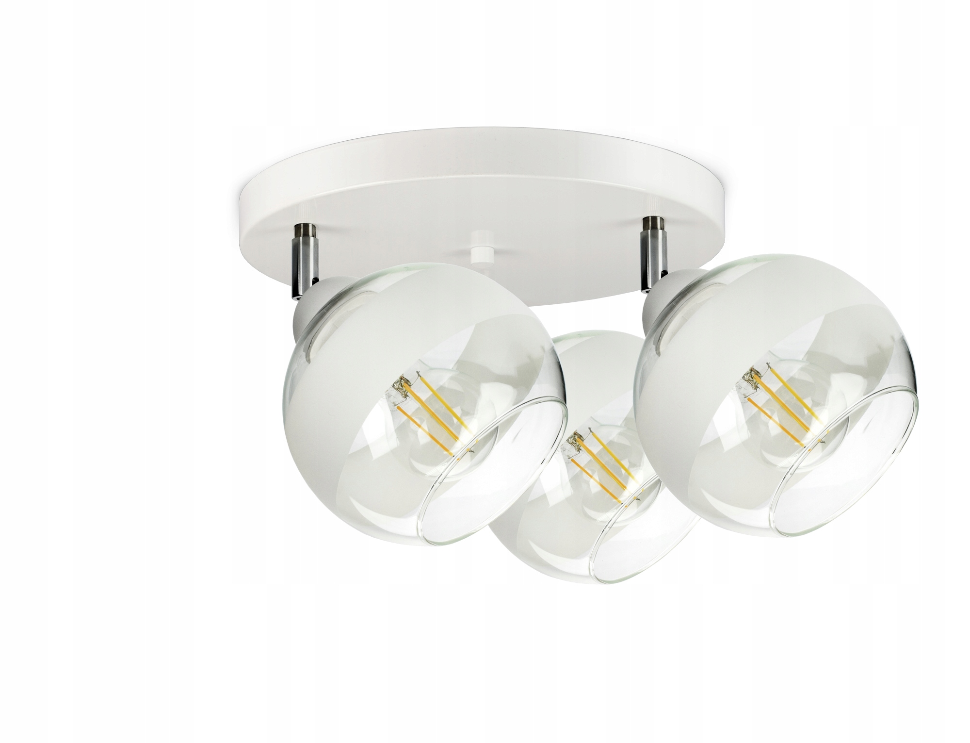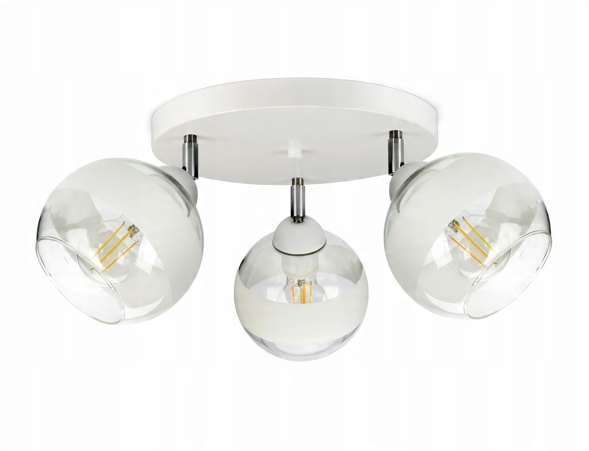 ✅ Lampa wyposażona w szklane klosze w kształcie kuli z białym pasem w części centralnej.