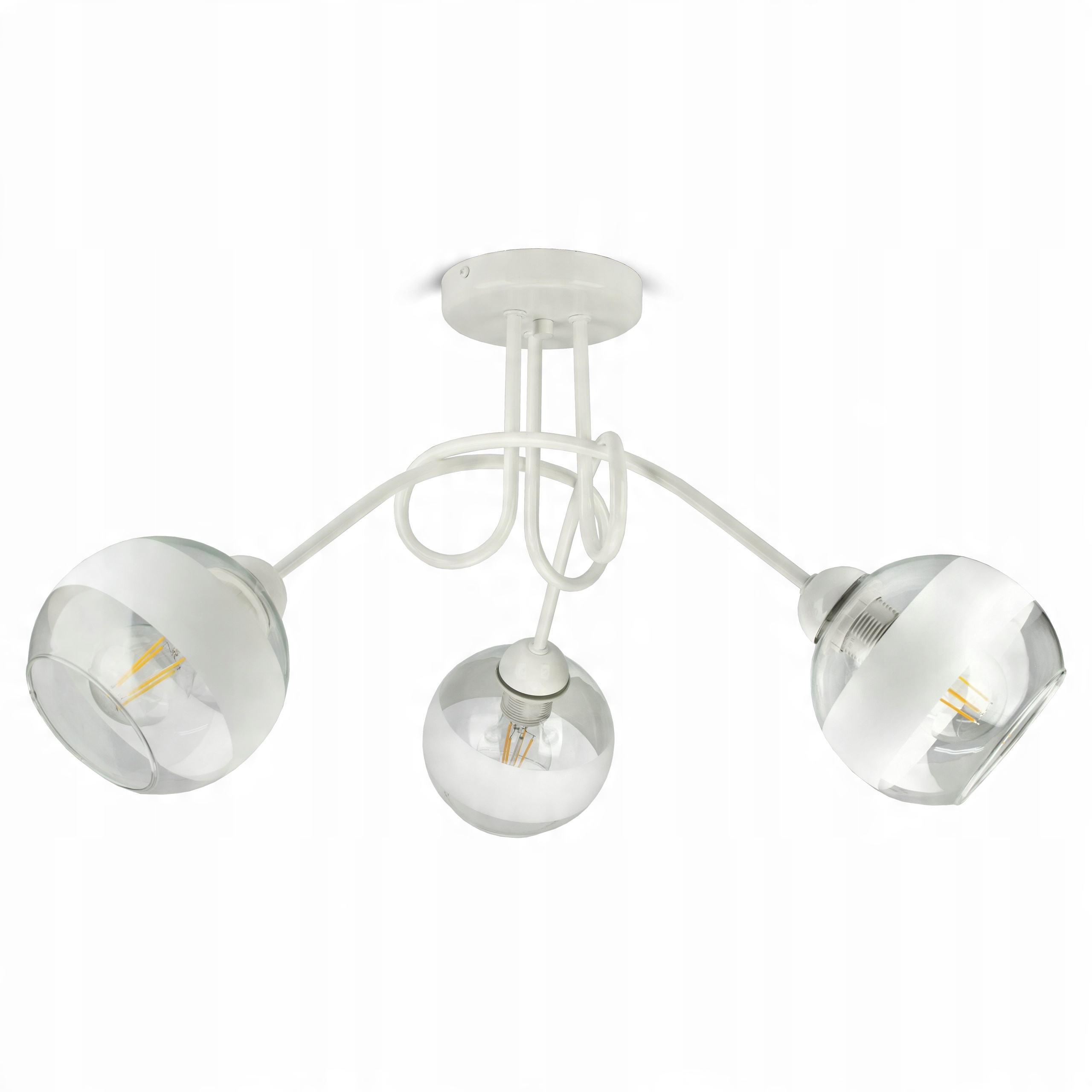 ✅ Lampa wyposażona w szklane klosze w kształcie kuli z białym pasem w części centralnej.