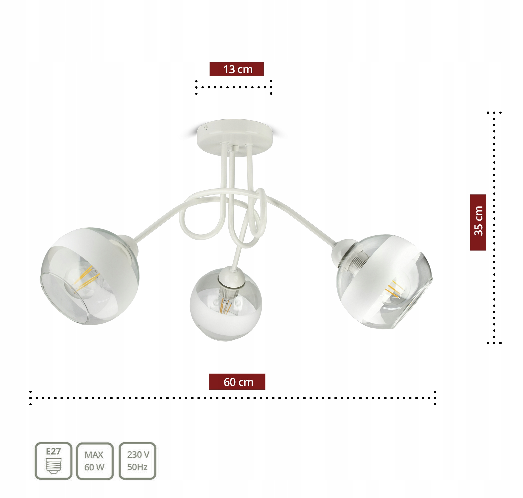 Zestaw nie zawiera żarówek, a także kołków rozporowych (należy dobrać odpowiednie do sufitu).