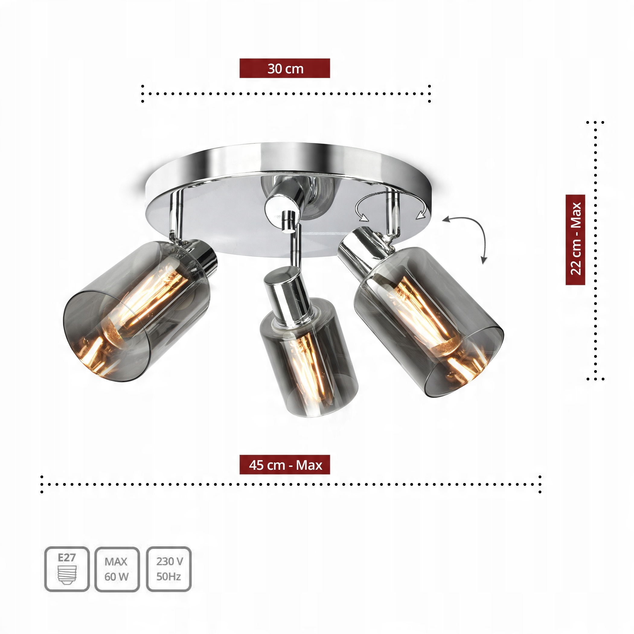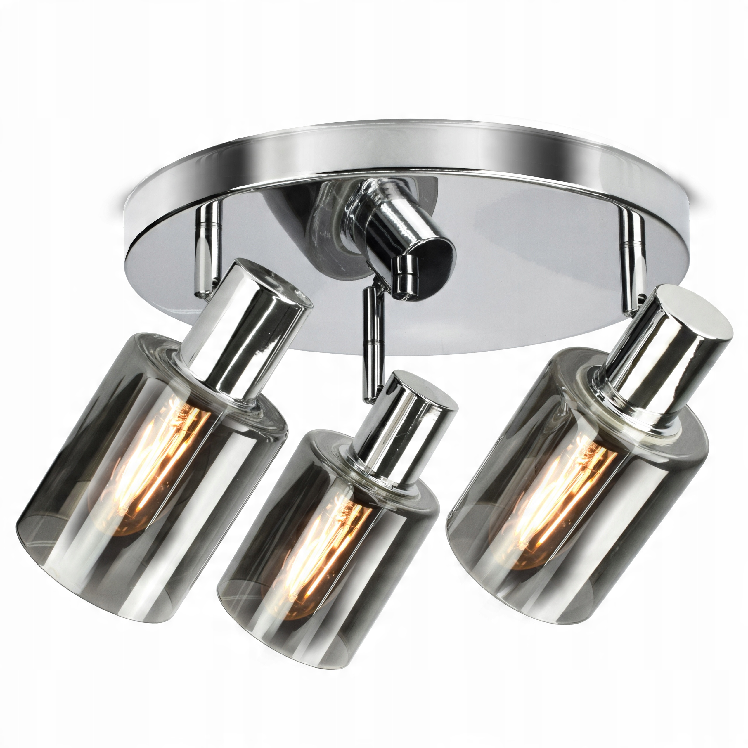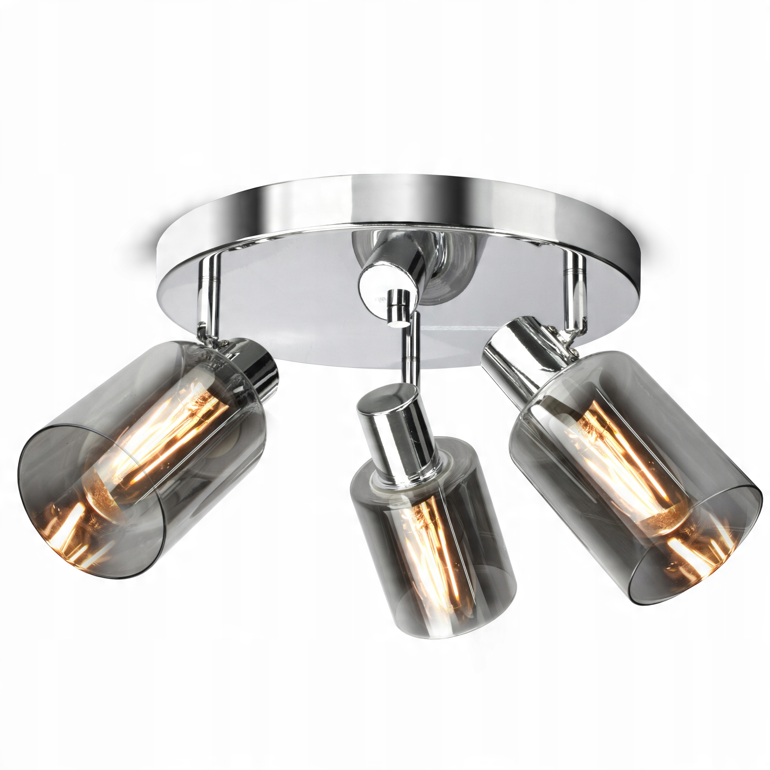 ✅ Lampa wyposażona w szklane, dymione klosze w kształcie tub,