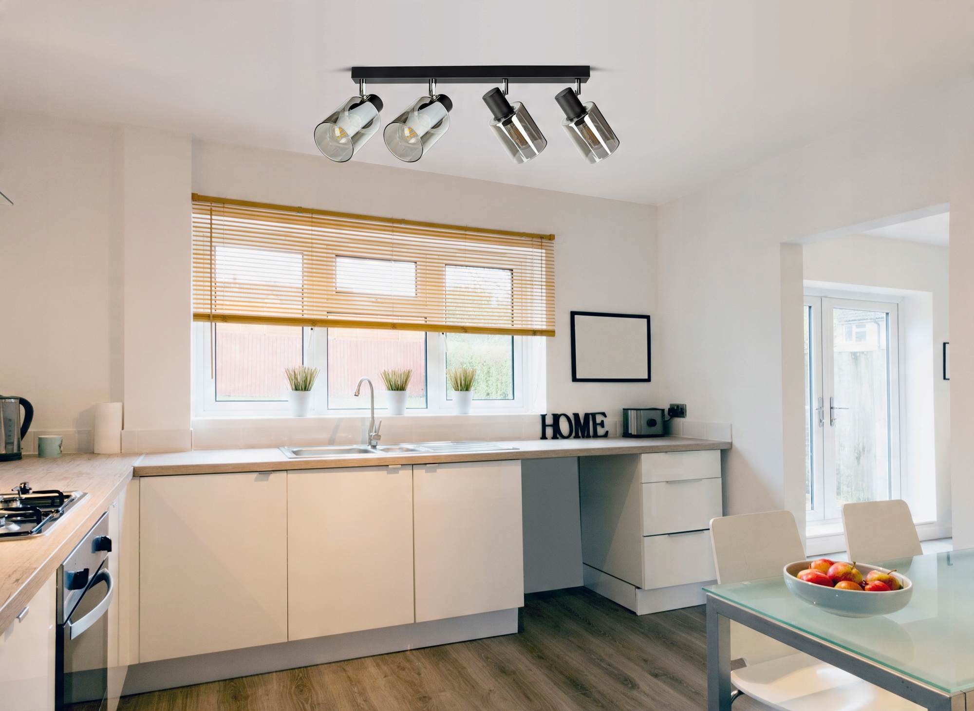 Oprawa natynkowa, metalowa ze szklanymi kloszami mająca zastosowanie jako oświetlenie wewnętrzne, z wyłączeniem miejsc o podwyższonej wilgotności.