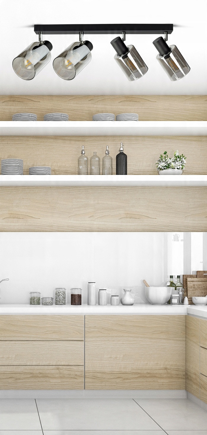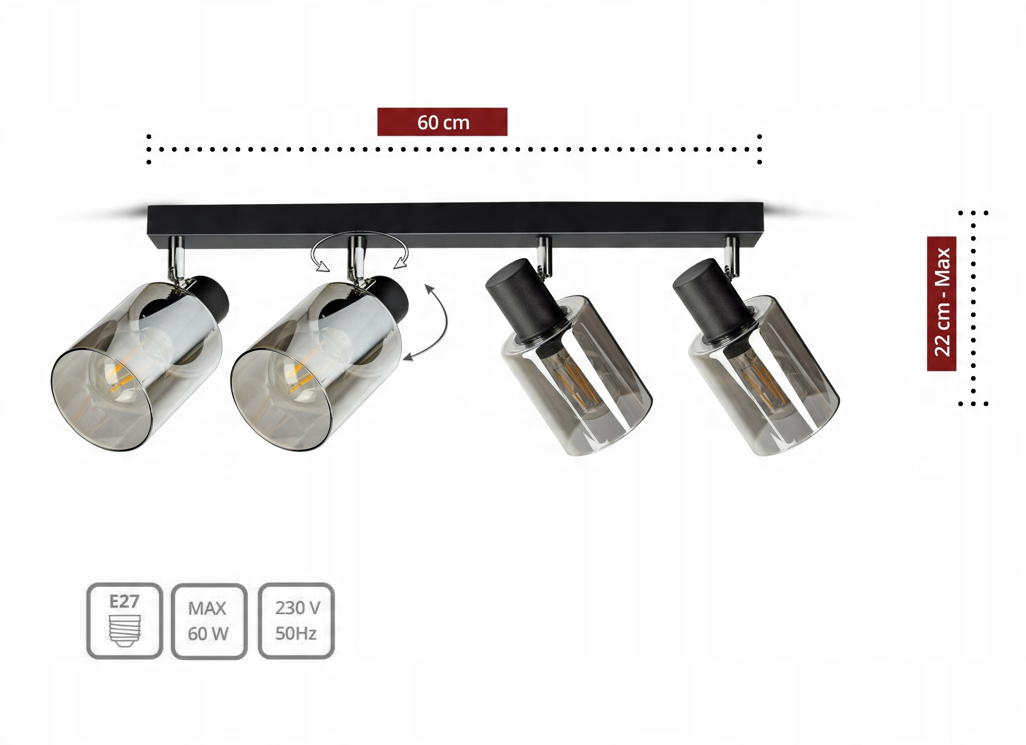 ✅ Lampa wyposażona w szklane, dymione klosze w kształcie tub,