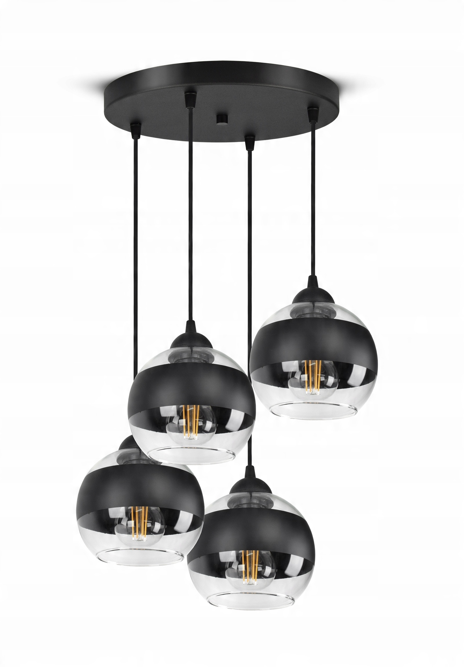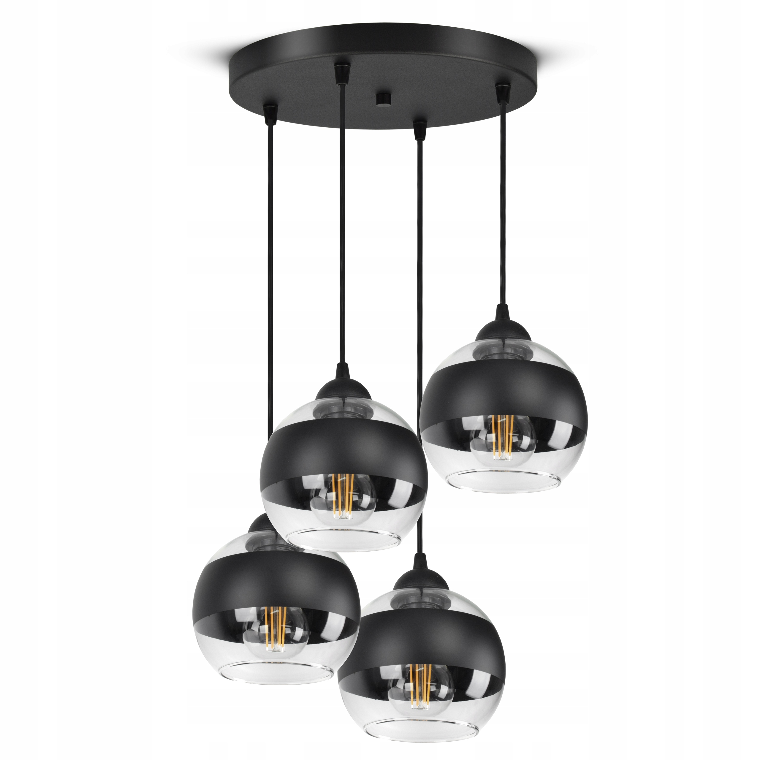 ✅ Lampa wyposażona w szklane klosze w kształcie kuli z Czarnym pasem w części centralnej.