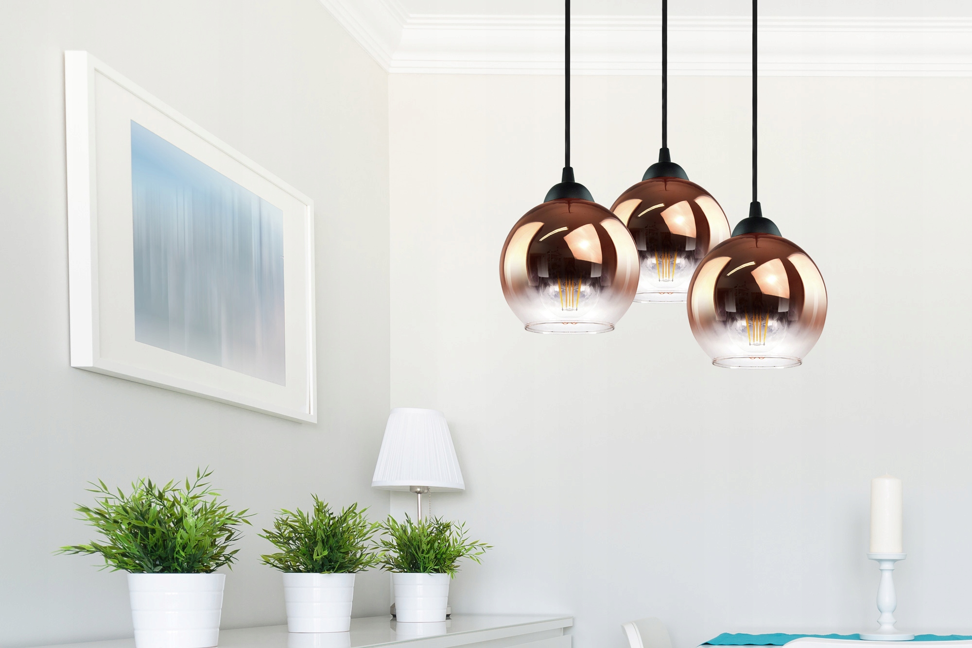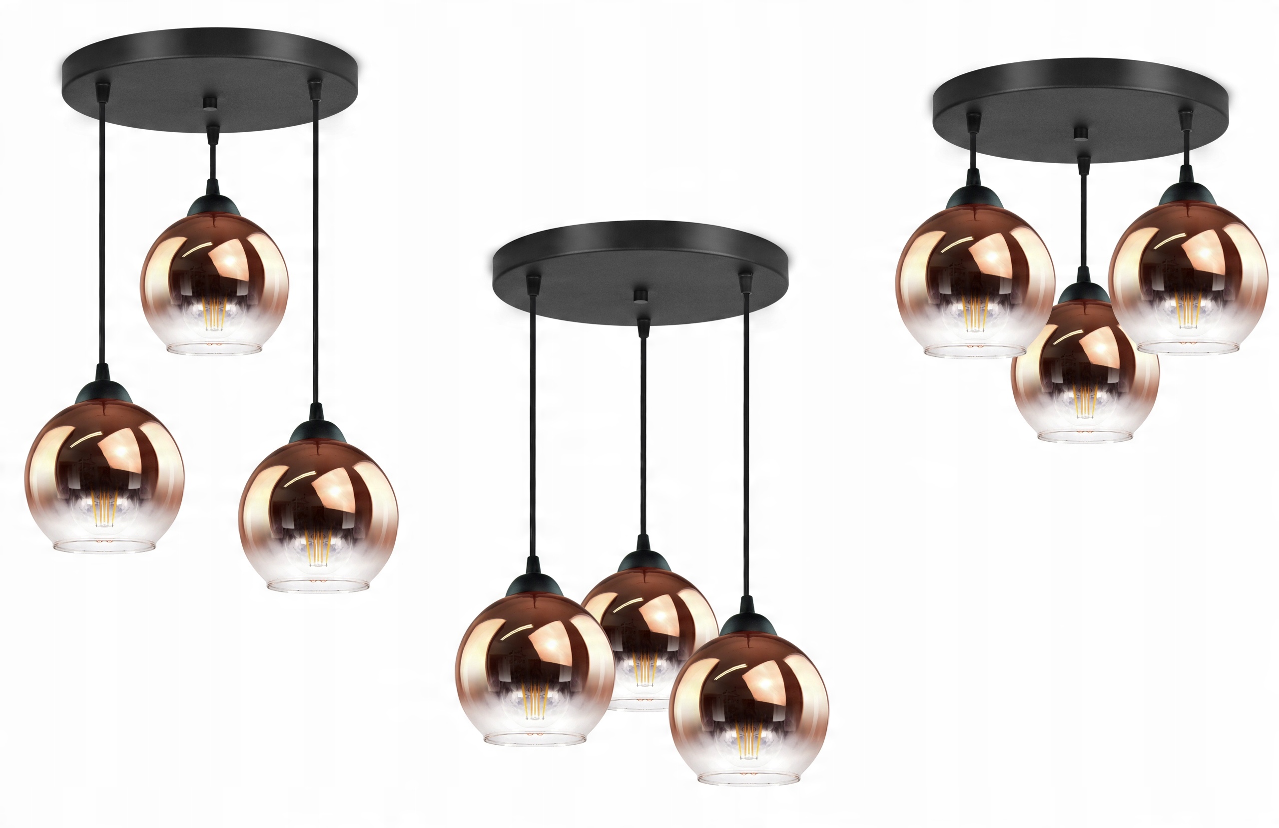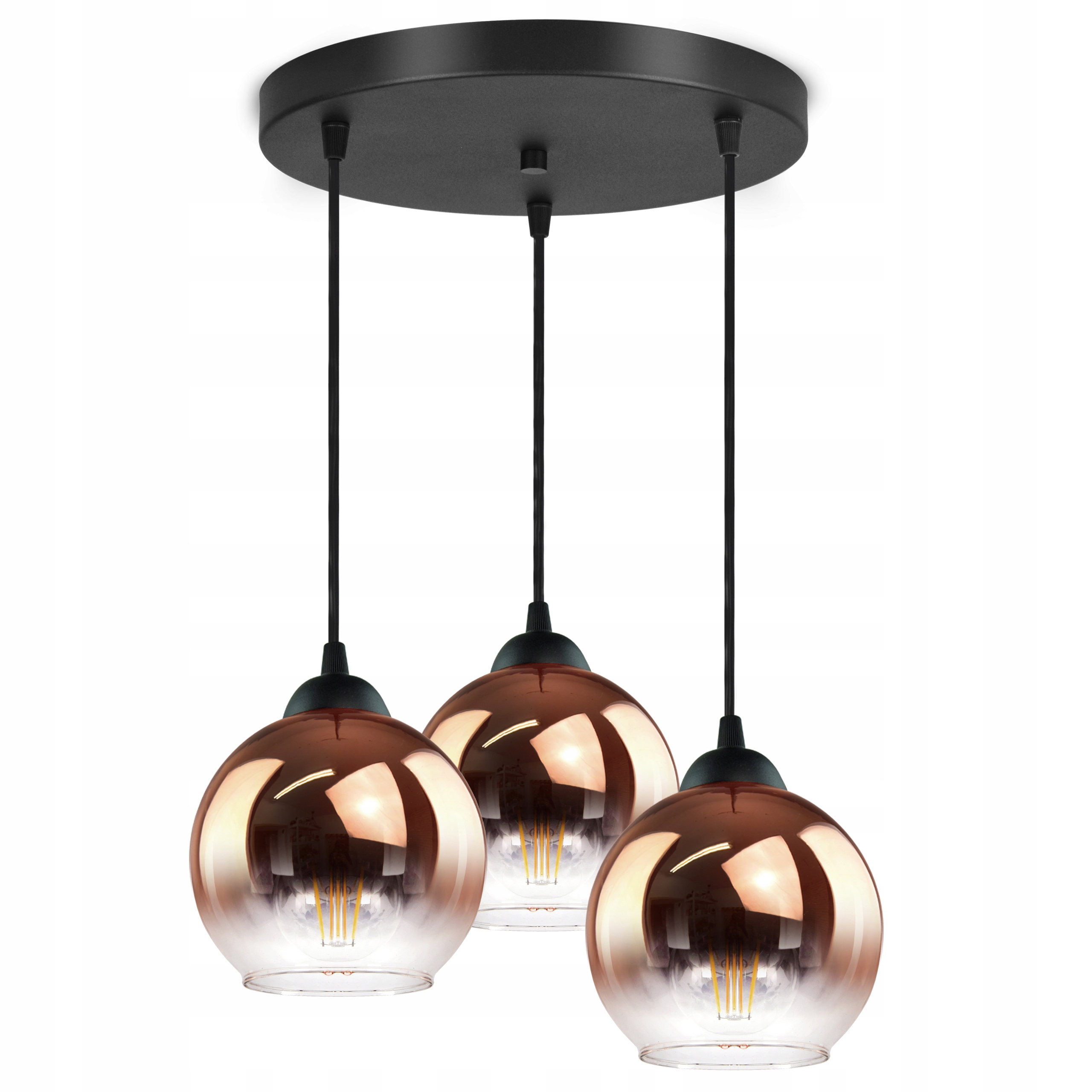 Lampa Wisząca Trzy Kule Miedziane Transparentne