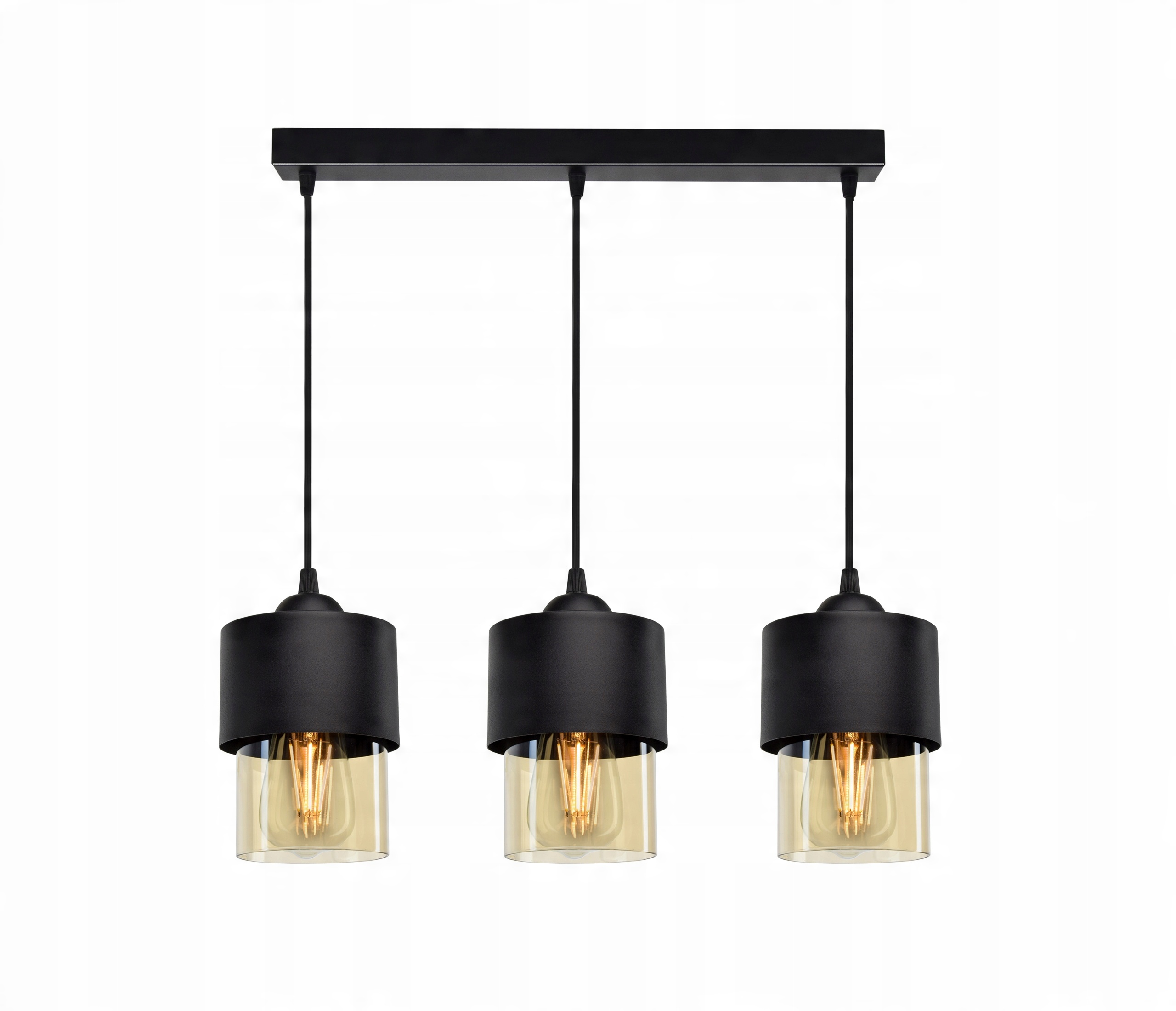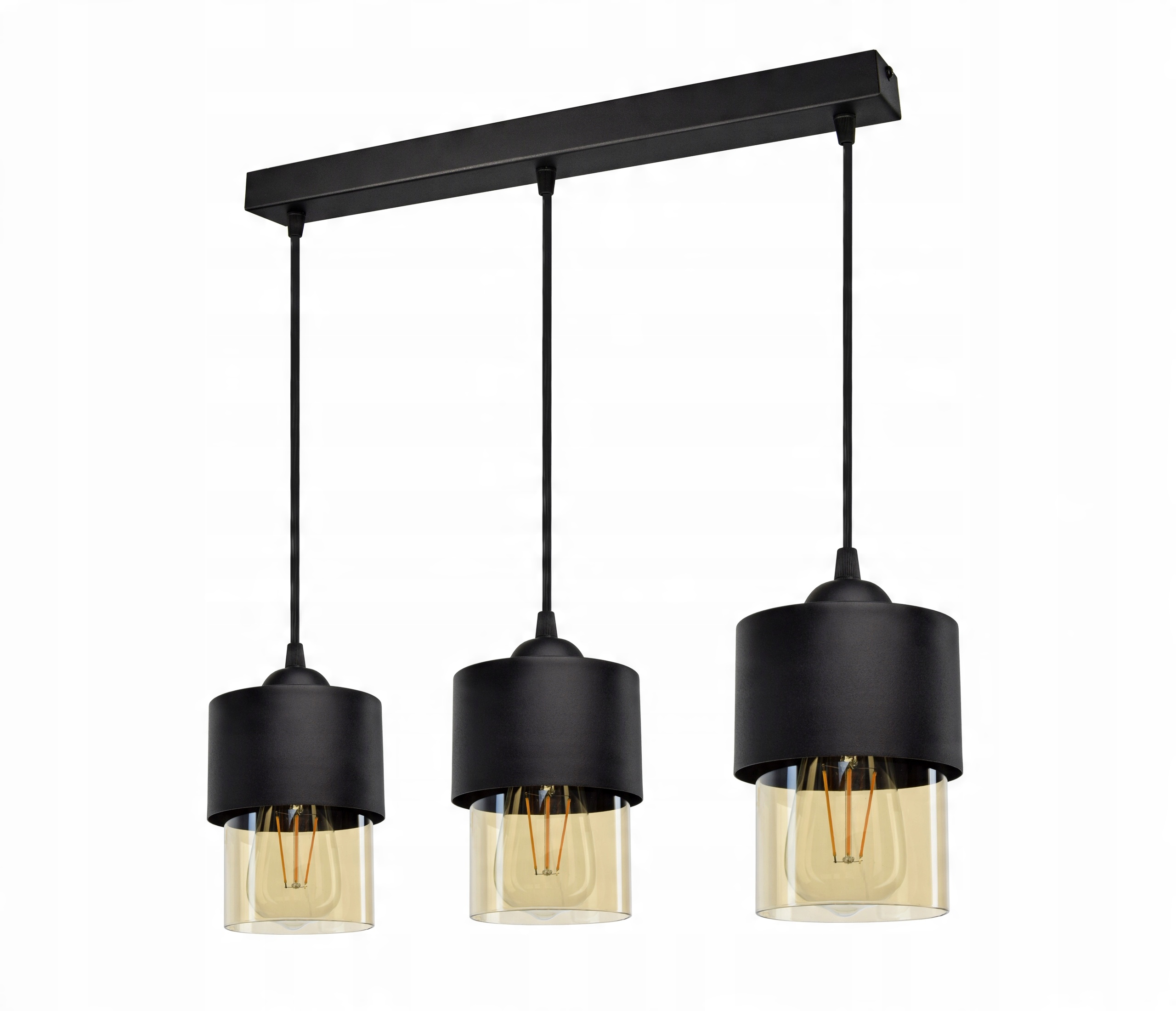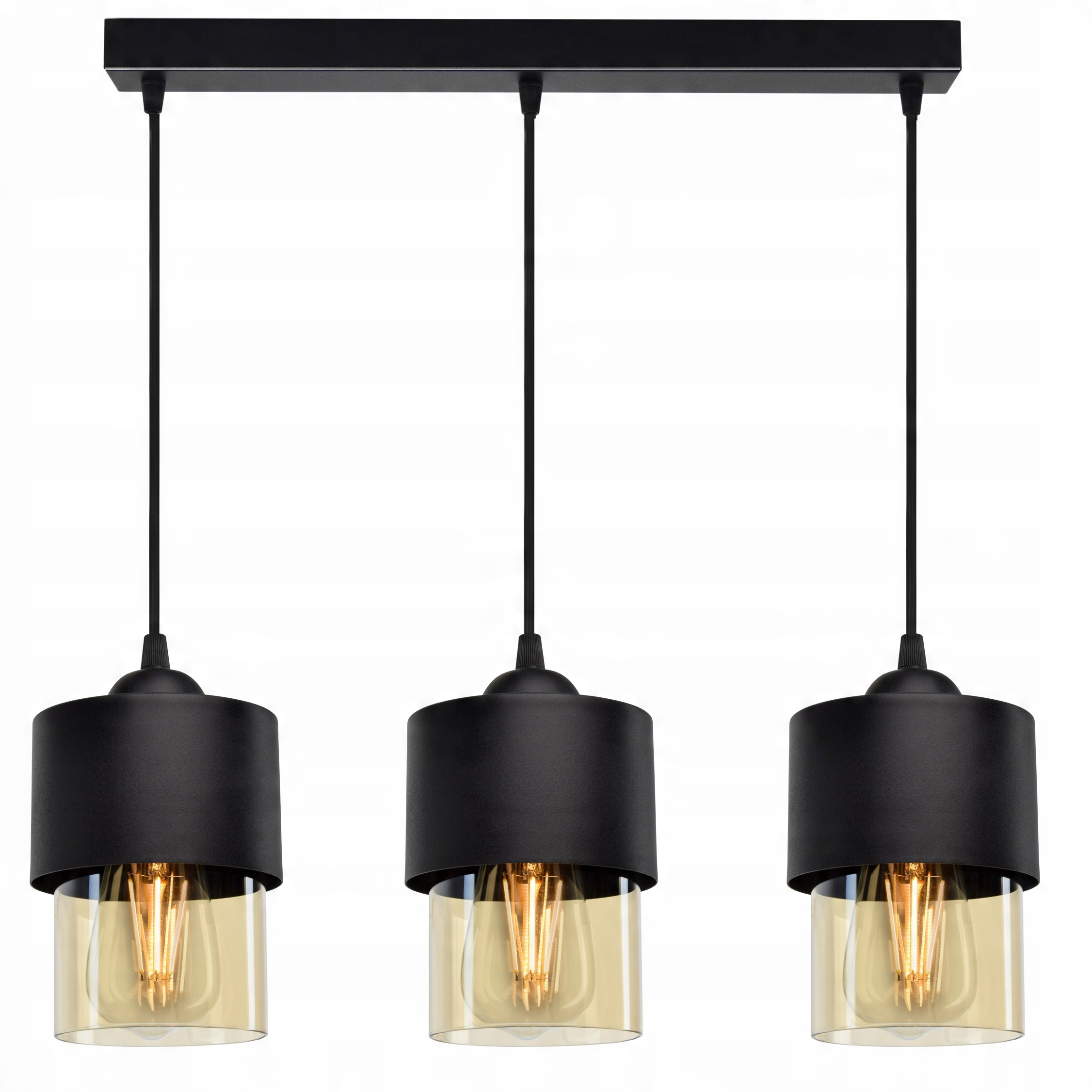 Lampa Wisząca Żyrandol Klosze Metal Szkło Miód LED