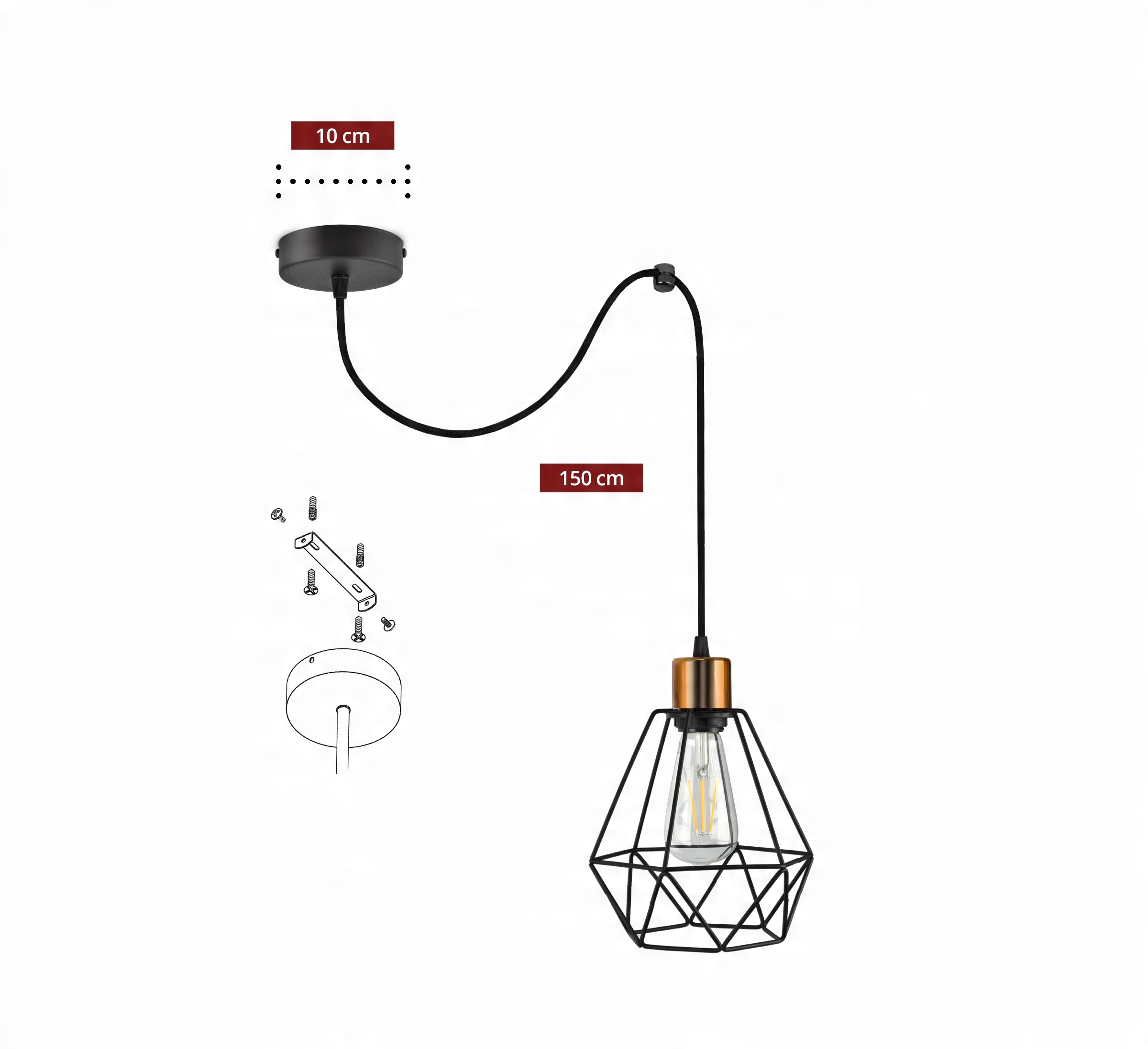 Zestaw nie zawiera żarówki ani kołków rozporowych (należy dobrać odpowiednie do sufitu)