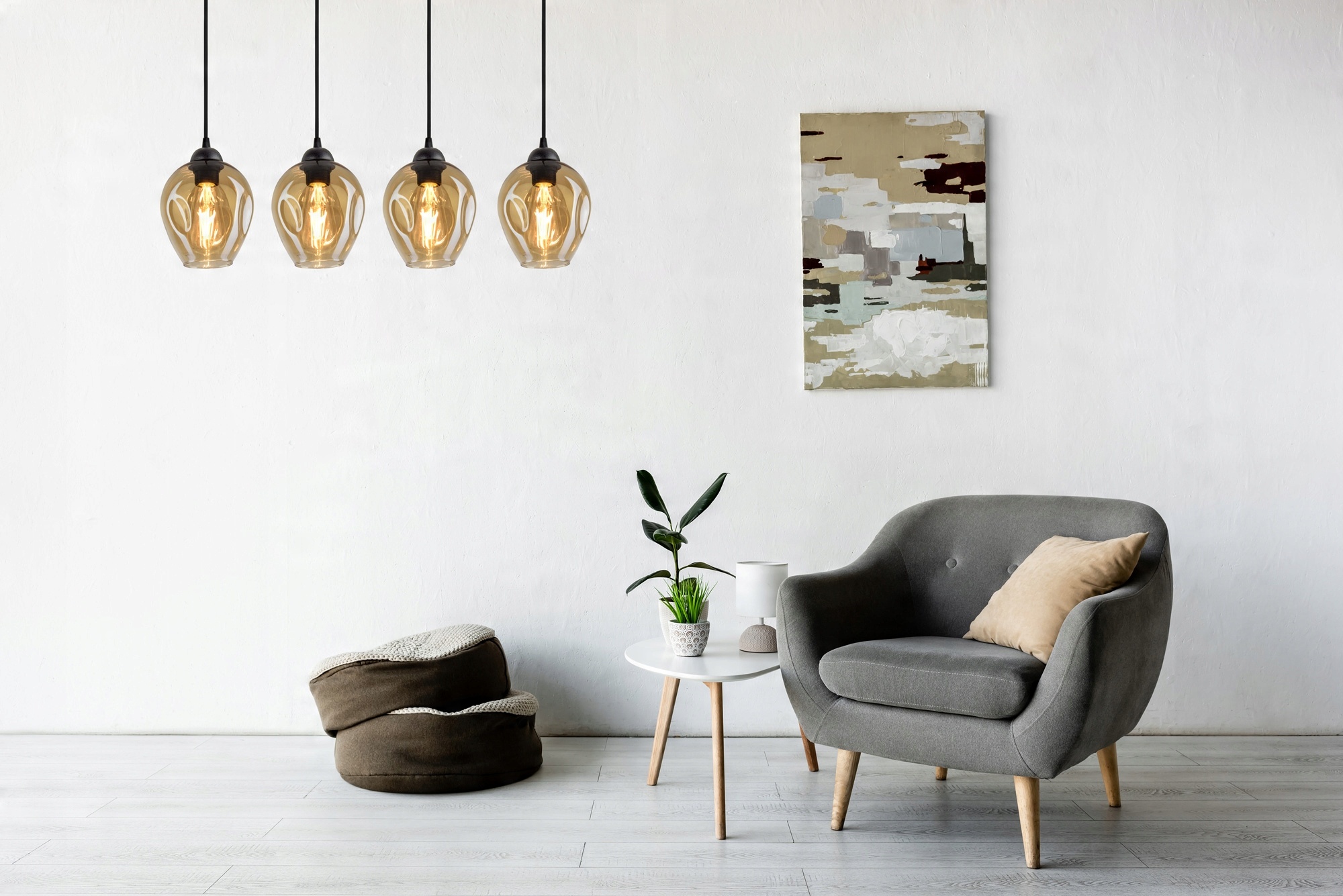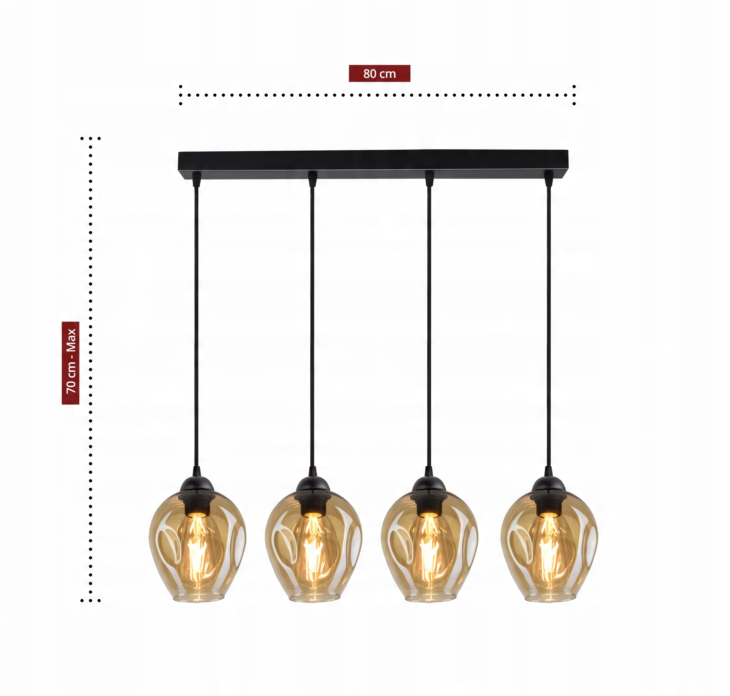 Lampa Wisząca Żyrandol Plafon 4 Klosze Miód LED