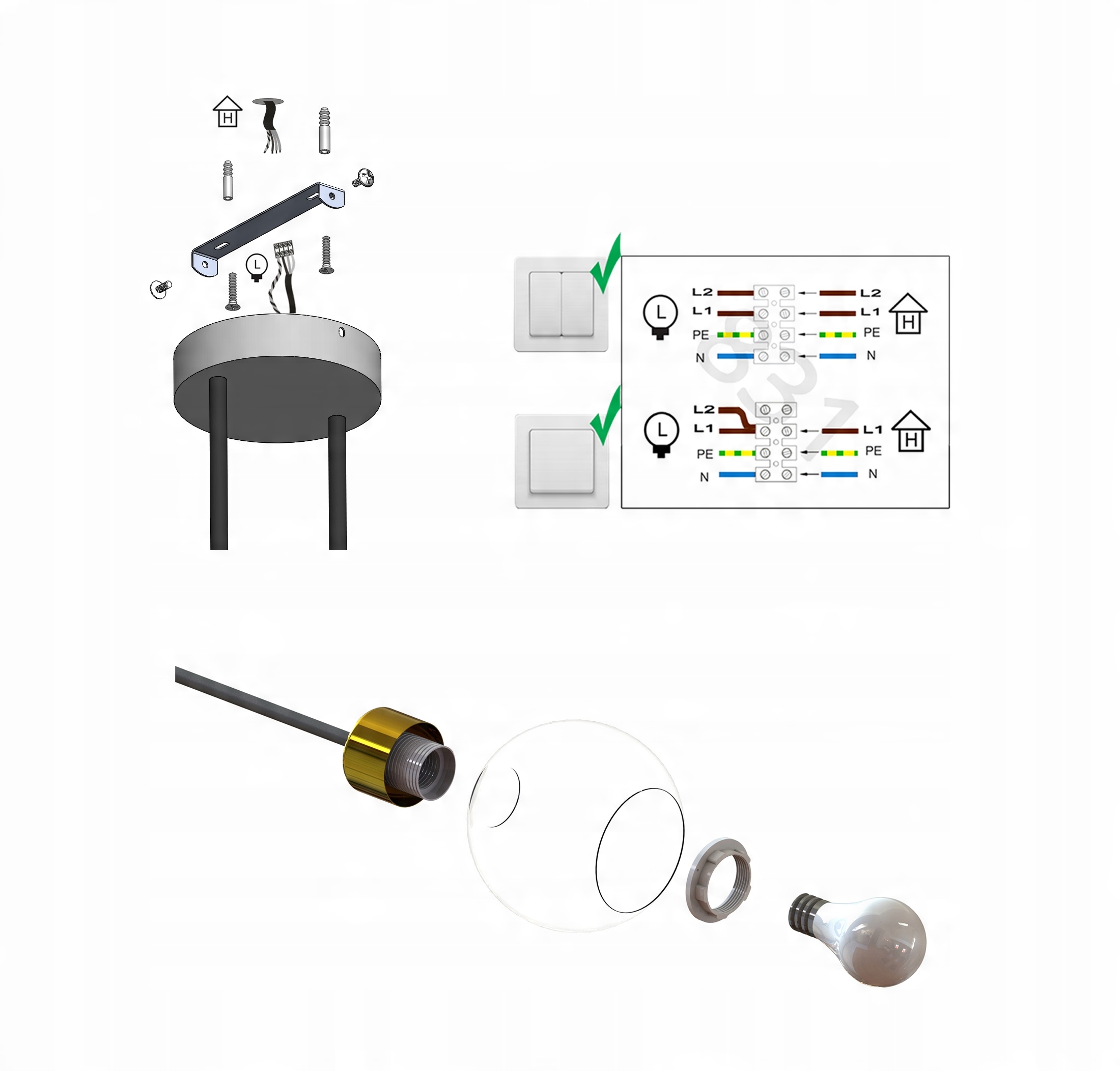 Zestaw nie zawiera żarówek ani kołków rozporowych (należy dobrać odpowiednie do sufitu)