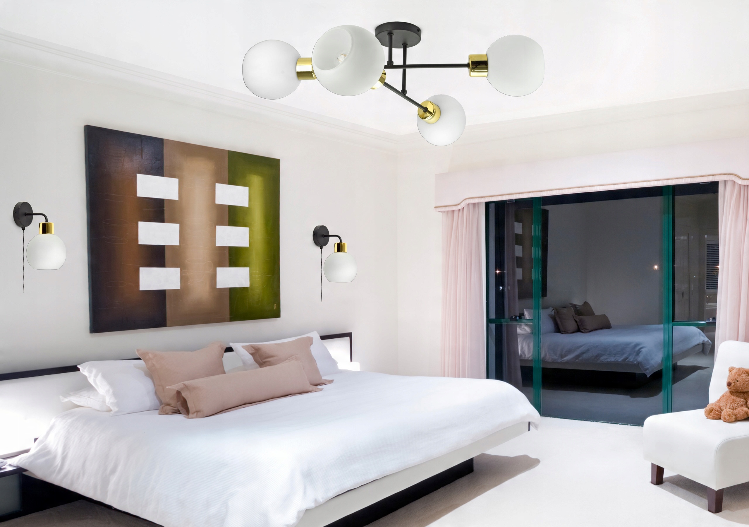 Lampa Wisząca Żyrandol Szklane Kule Mleczne LED