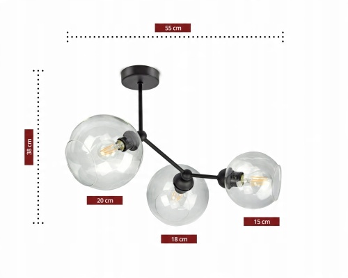 Lampa Żyrandol Trzy różne szklane Kule Transparent