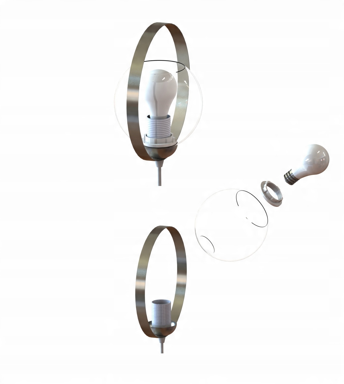 - Materiał kloszy: Metalowa obręcz + szkło w kolorze mlecznym