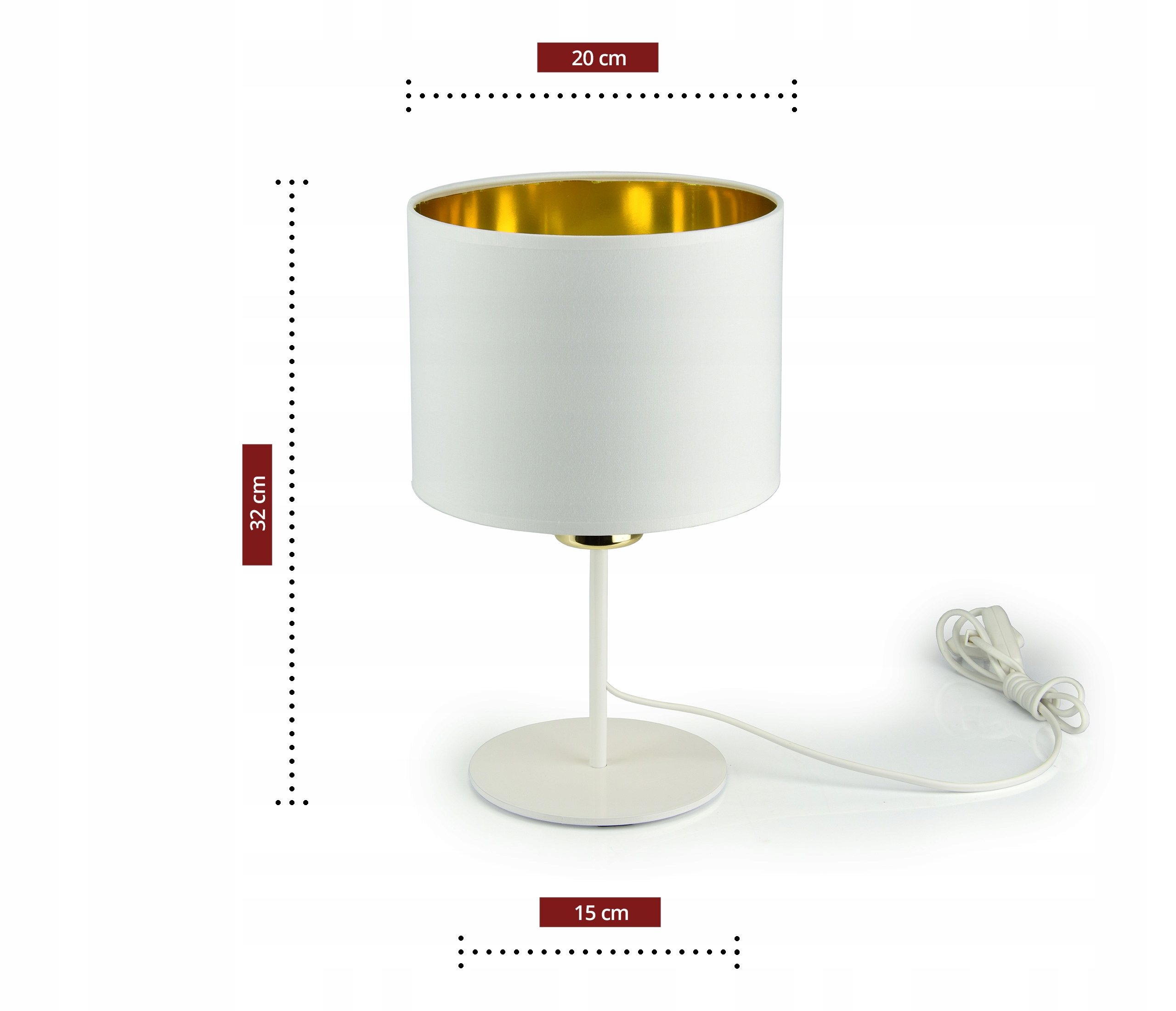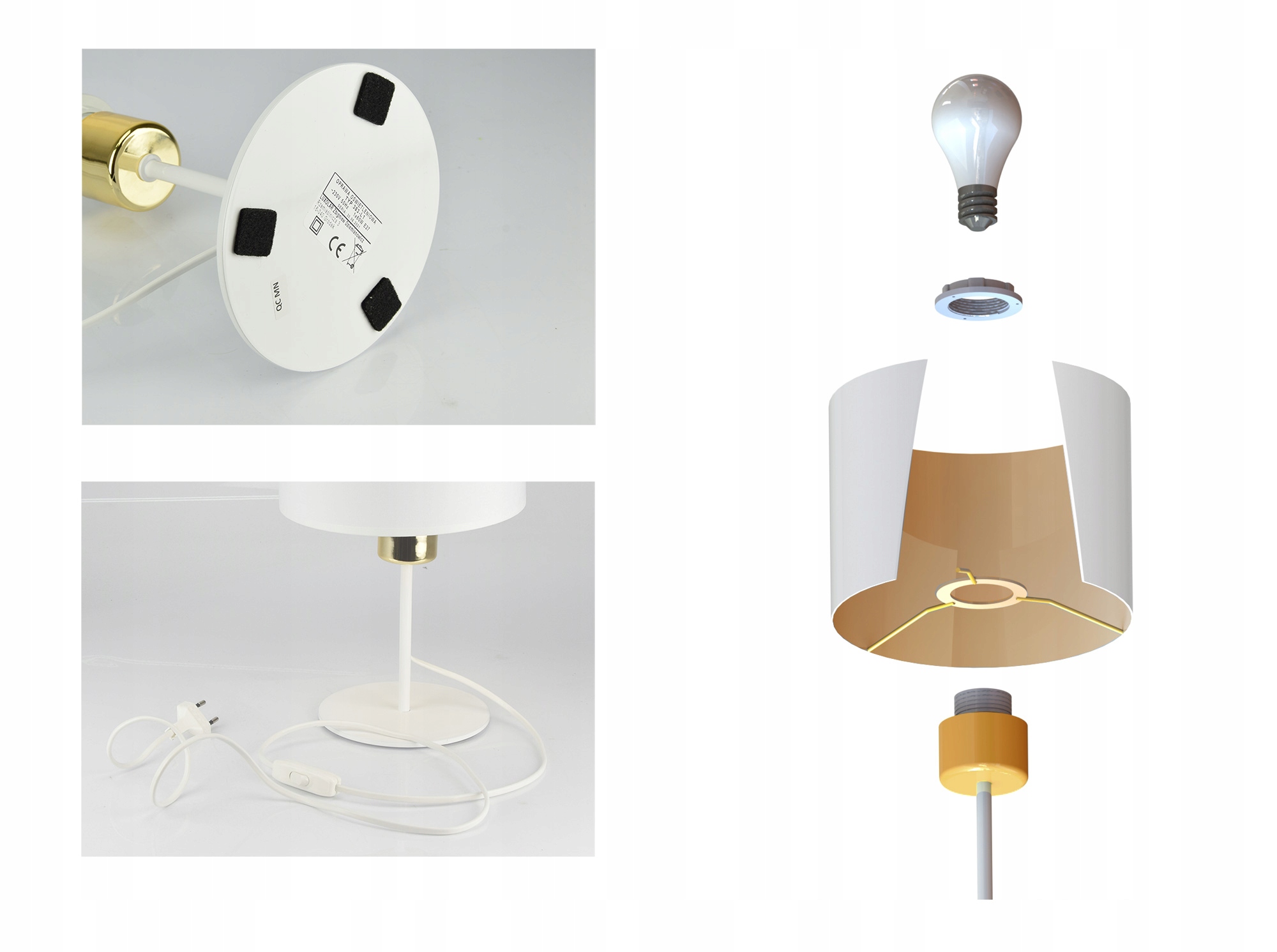 Lampka Nocna Stołowa Dekoracyjna Abażur Biały Złot