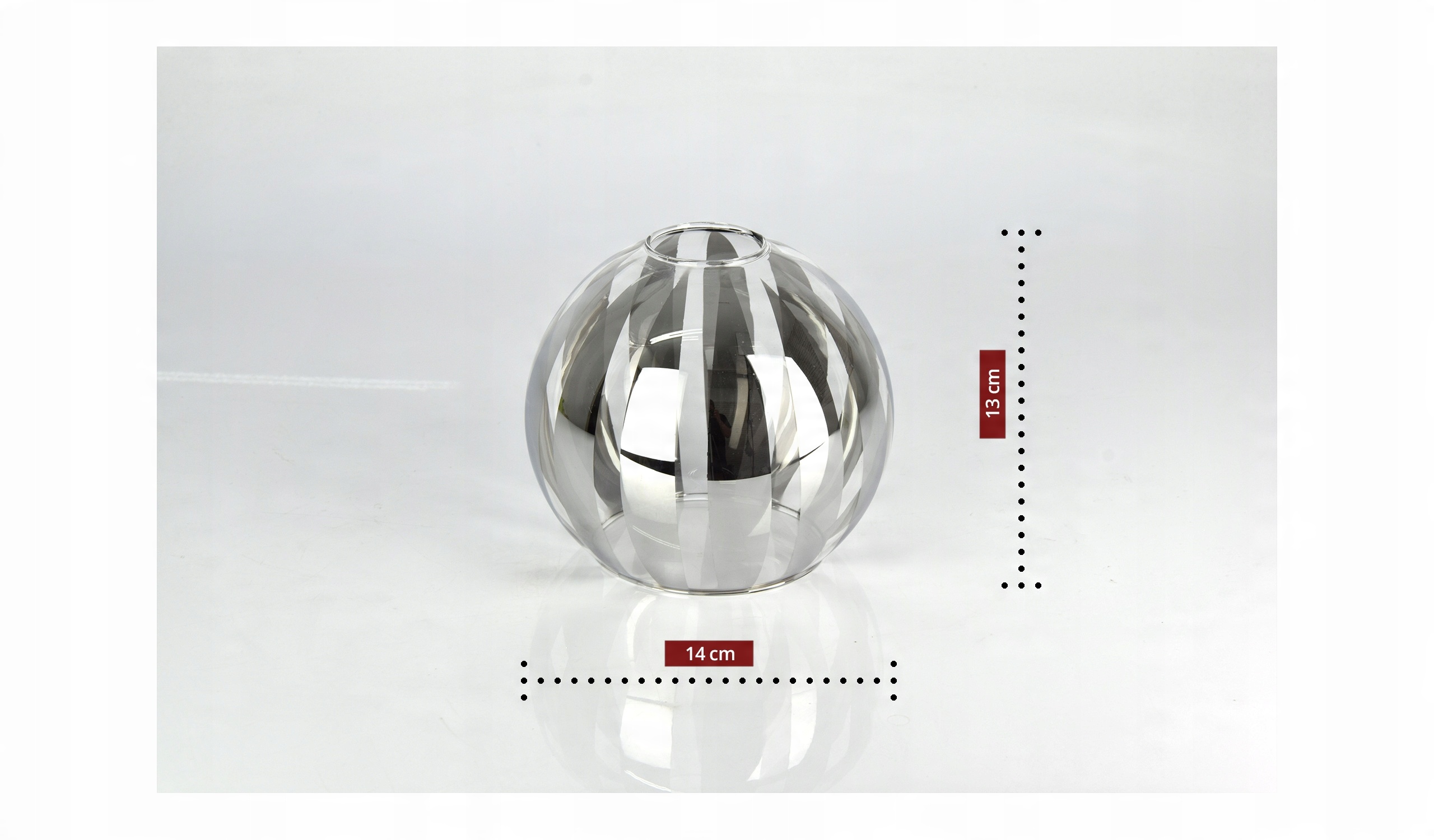 - Materiał klosza: Szkło w kolorze transparentnym z aluminiowymi podłużnymi pasami
