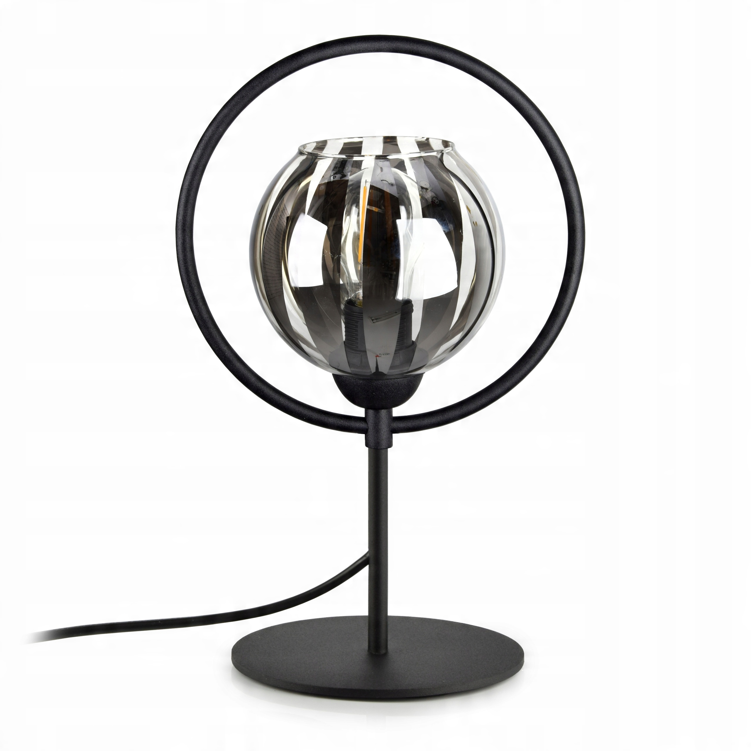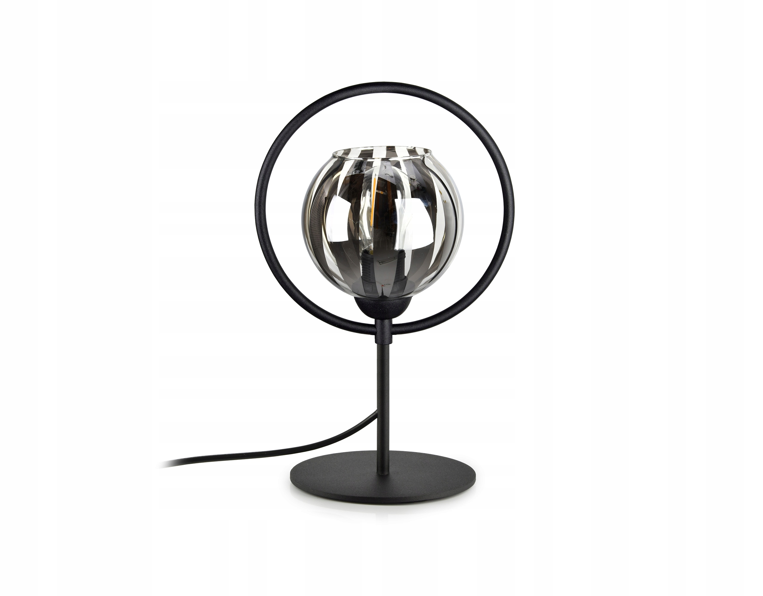 Elegancka lampka stojąca RING wyposażona w szklany klosz w kształcie kuli.