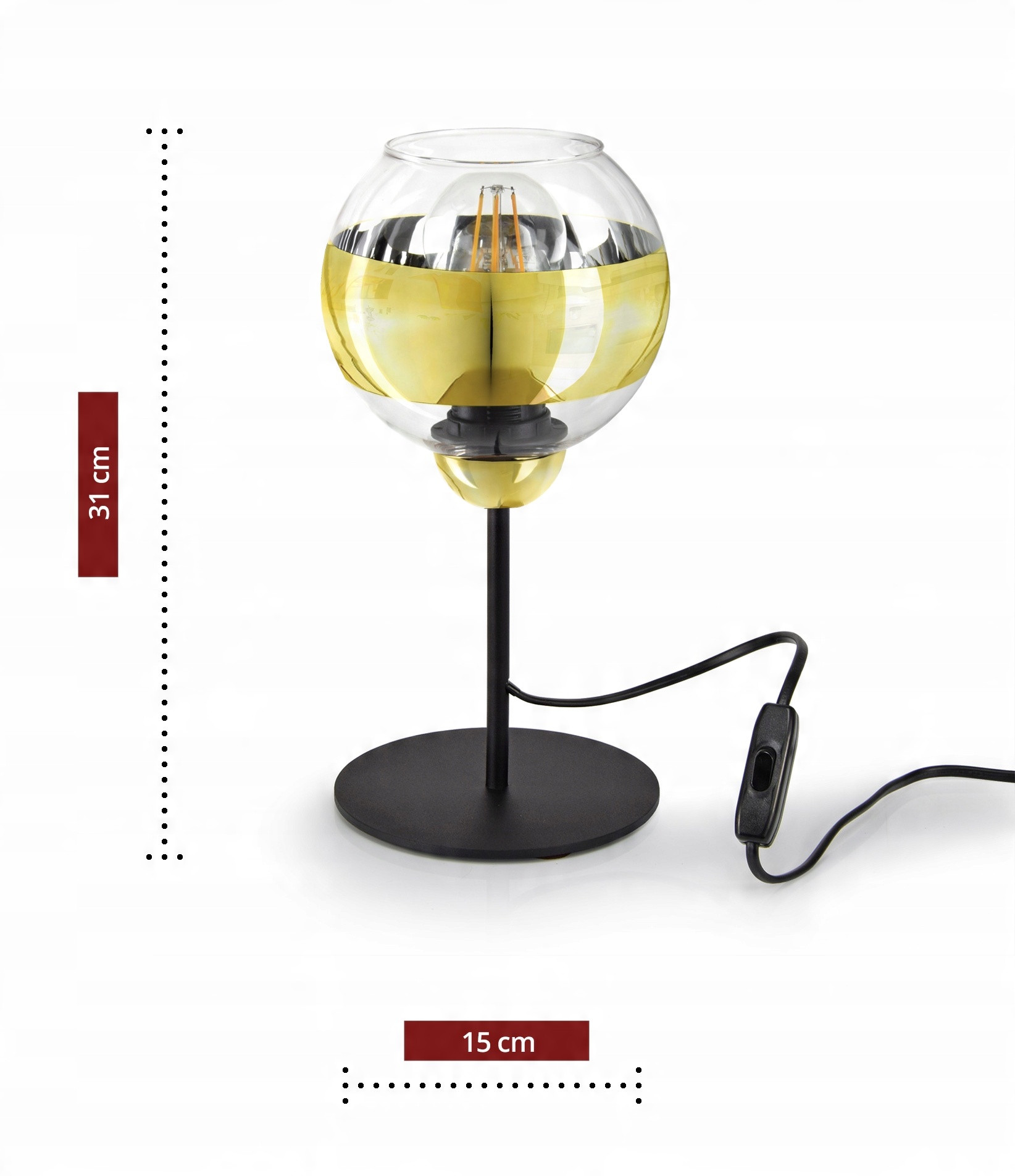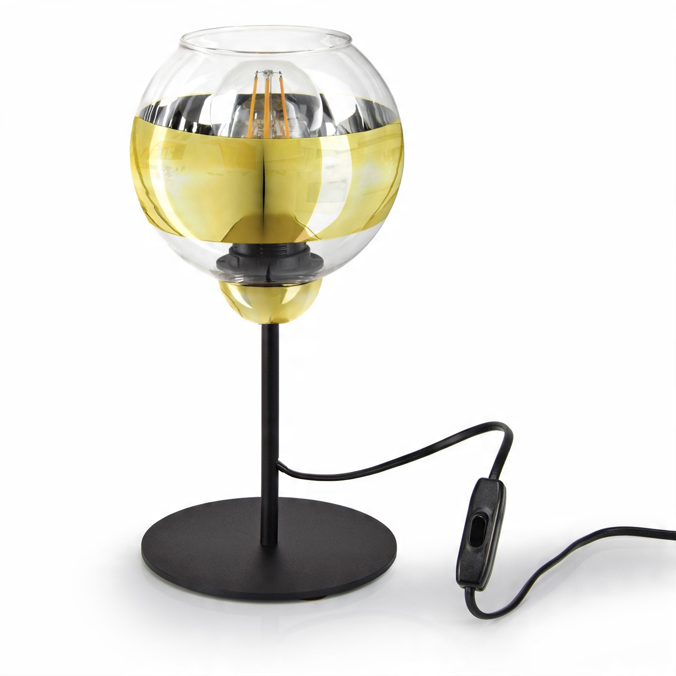 Lampka Stołowa Nocna Czarna Złota GLASS L1 LED E27