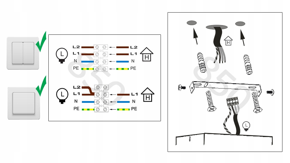 - Zestaw nie zawiera żarówek oraz kołków rozporowych do montażu