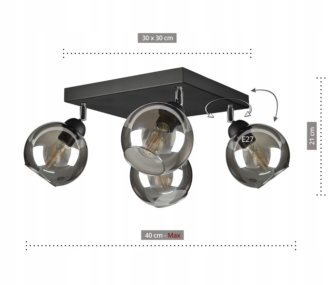- Źródło światła: E-27 - zalecane LED lub świetlówki kompaktowe