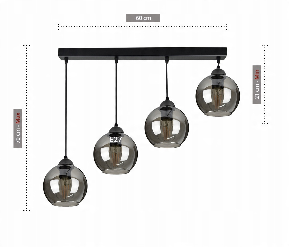 - Źródło światła: E-27 - zalecane LED lub świetlówki kompaktowe