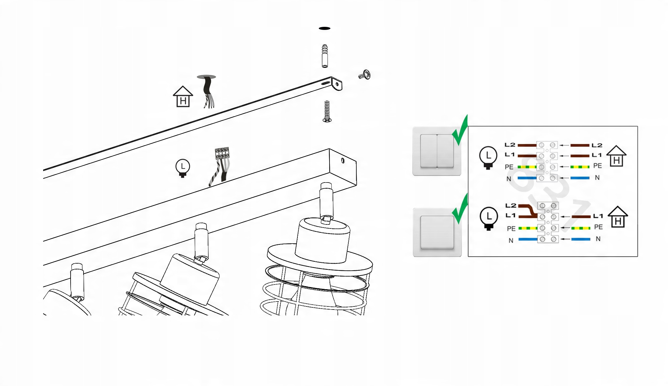 Zestaw nie zawiera żarówek ani kołków rozporowych (należy dobrać odpowiednie do sufitu)