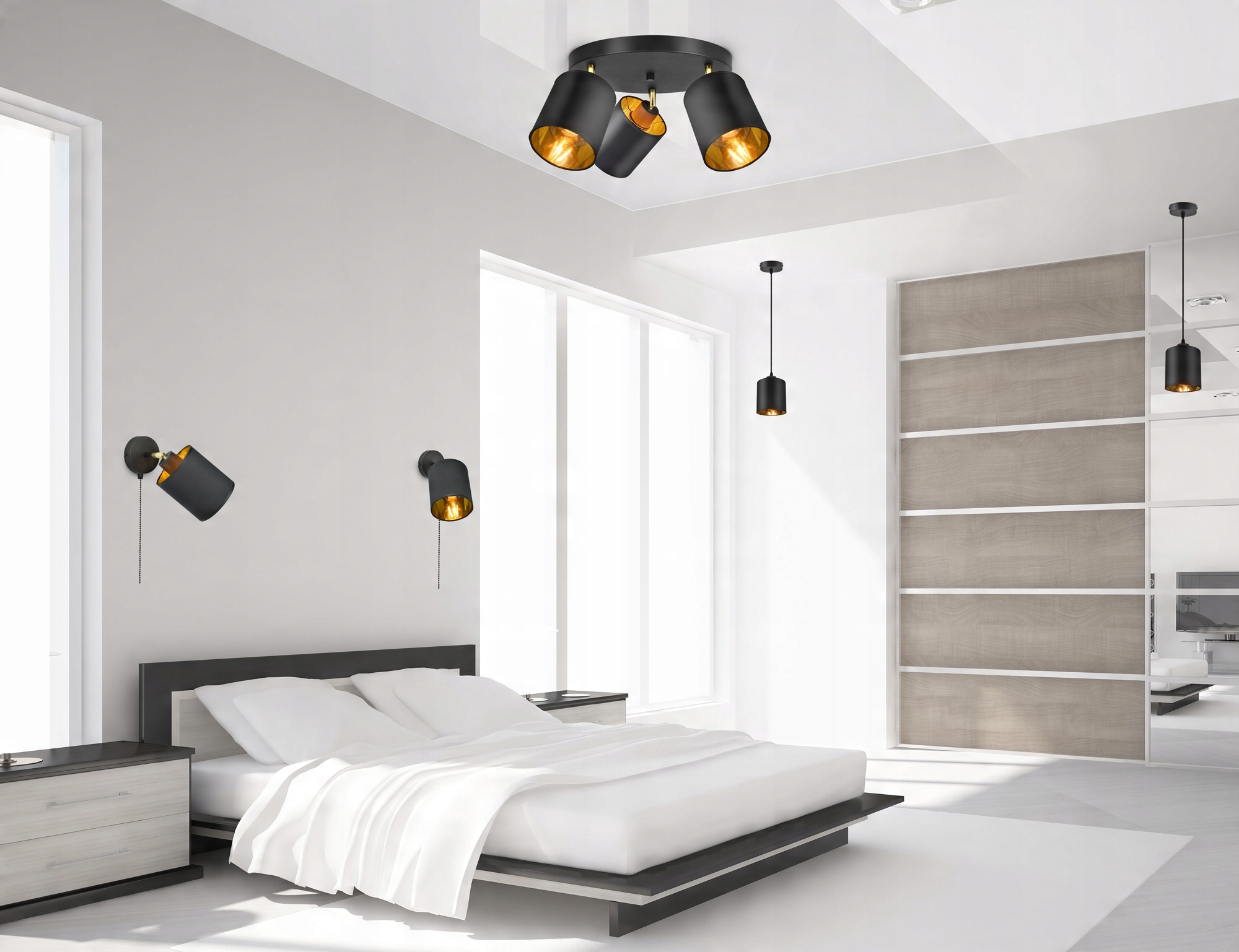 - Kolor abażurów: Czarny + złote wnętrze