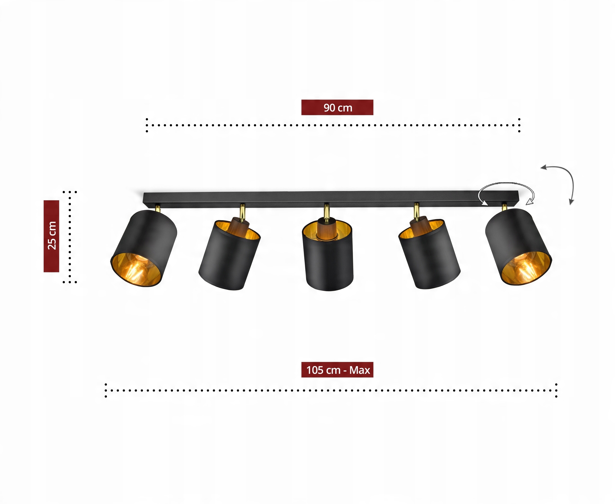 - Kolor abażurów: Czarny + złote wnętrze