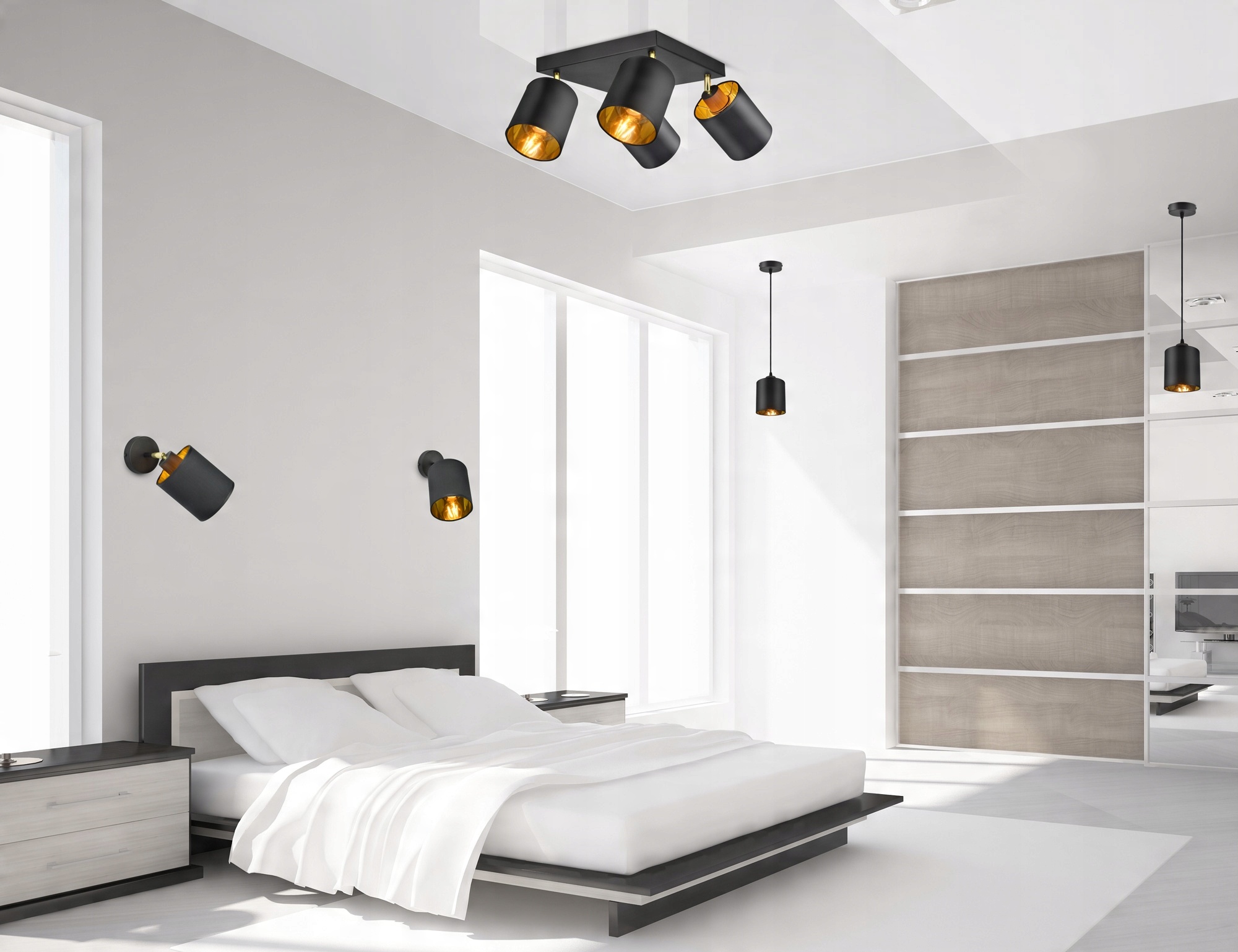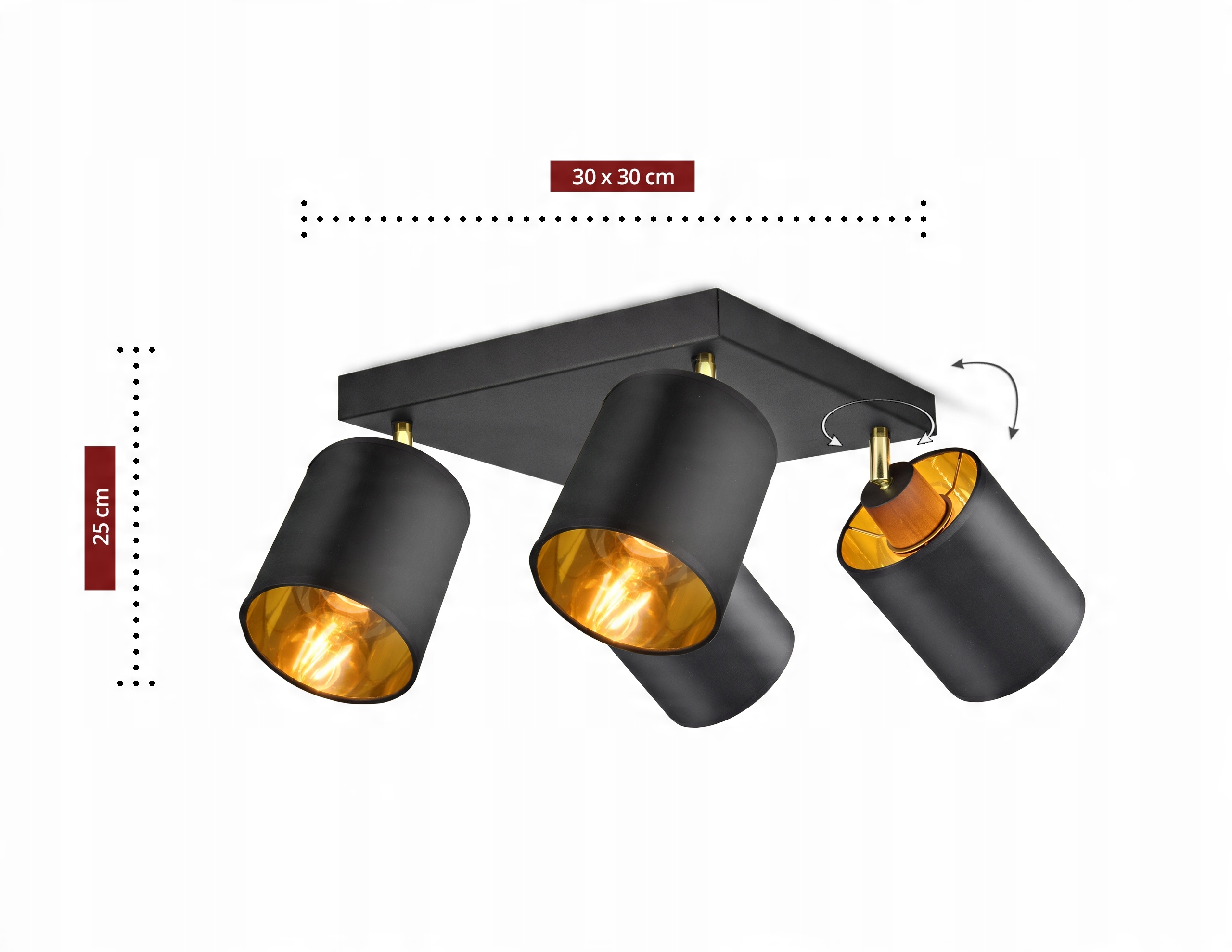 - Kolor abażurów: Czarny + złote wnętrze
