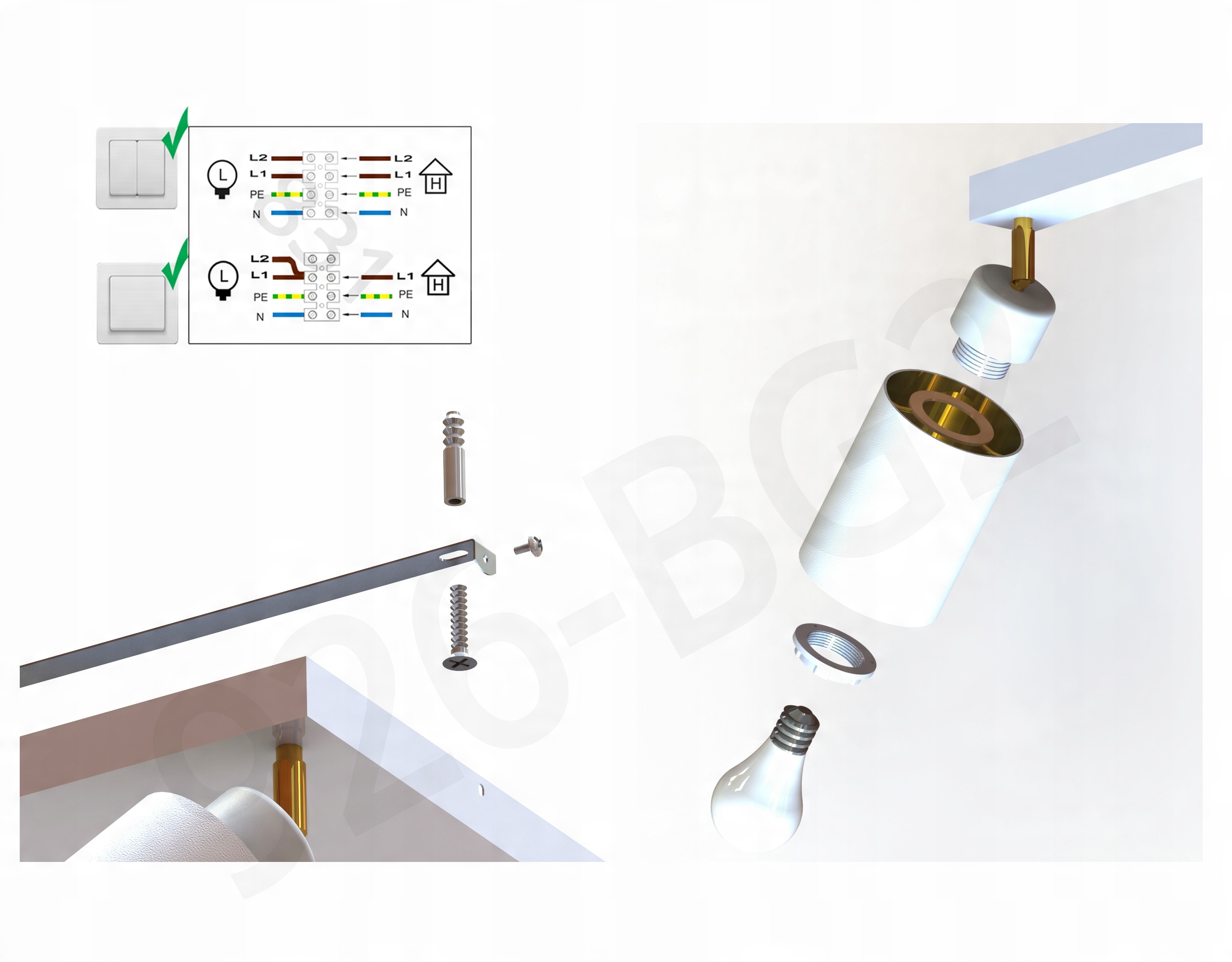 - Zestaw nie zawiera żarówek oraz kołków rozporowych do montażu
