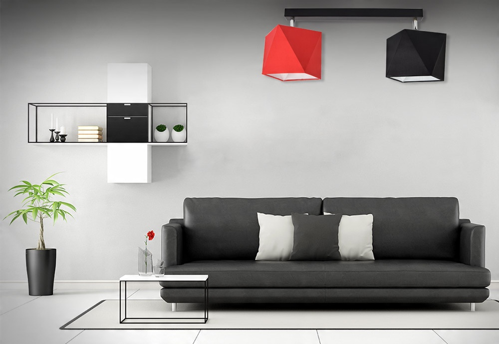 Lampa Plafon w stylu minimalistycznym z abażurami na kształt dwóch ruchomych diamentów.