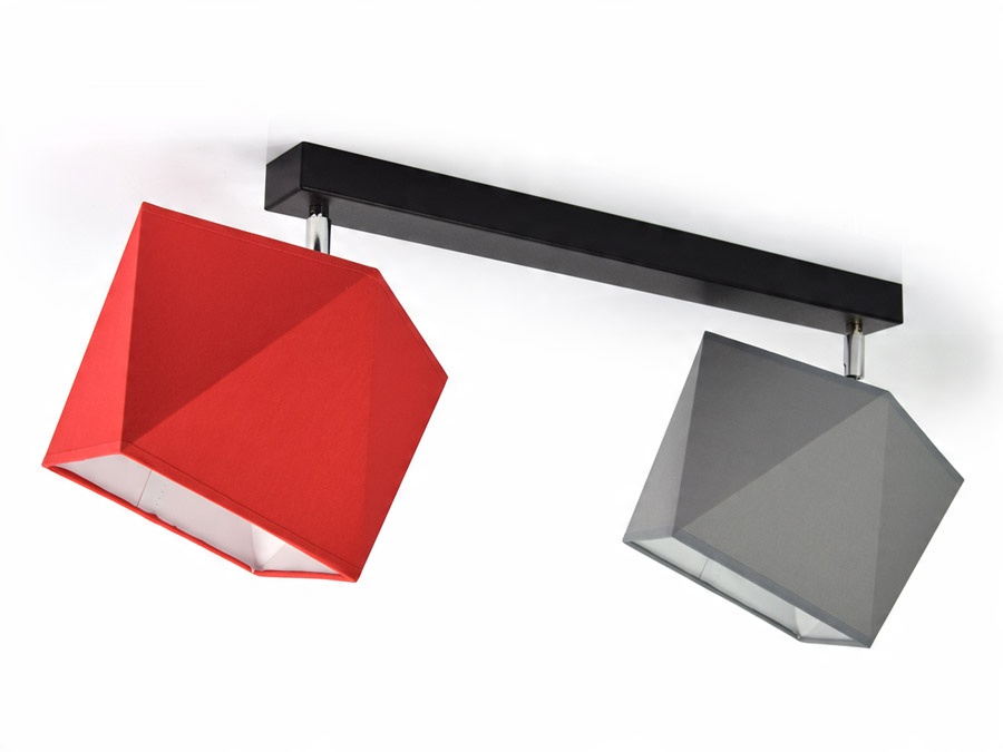 Kolorowa Lampa Plafon w stylu minimalistycznym z abażurami na kształt dwóch ruchomych diamentów.