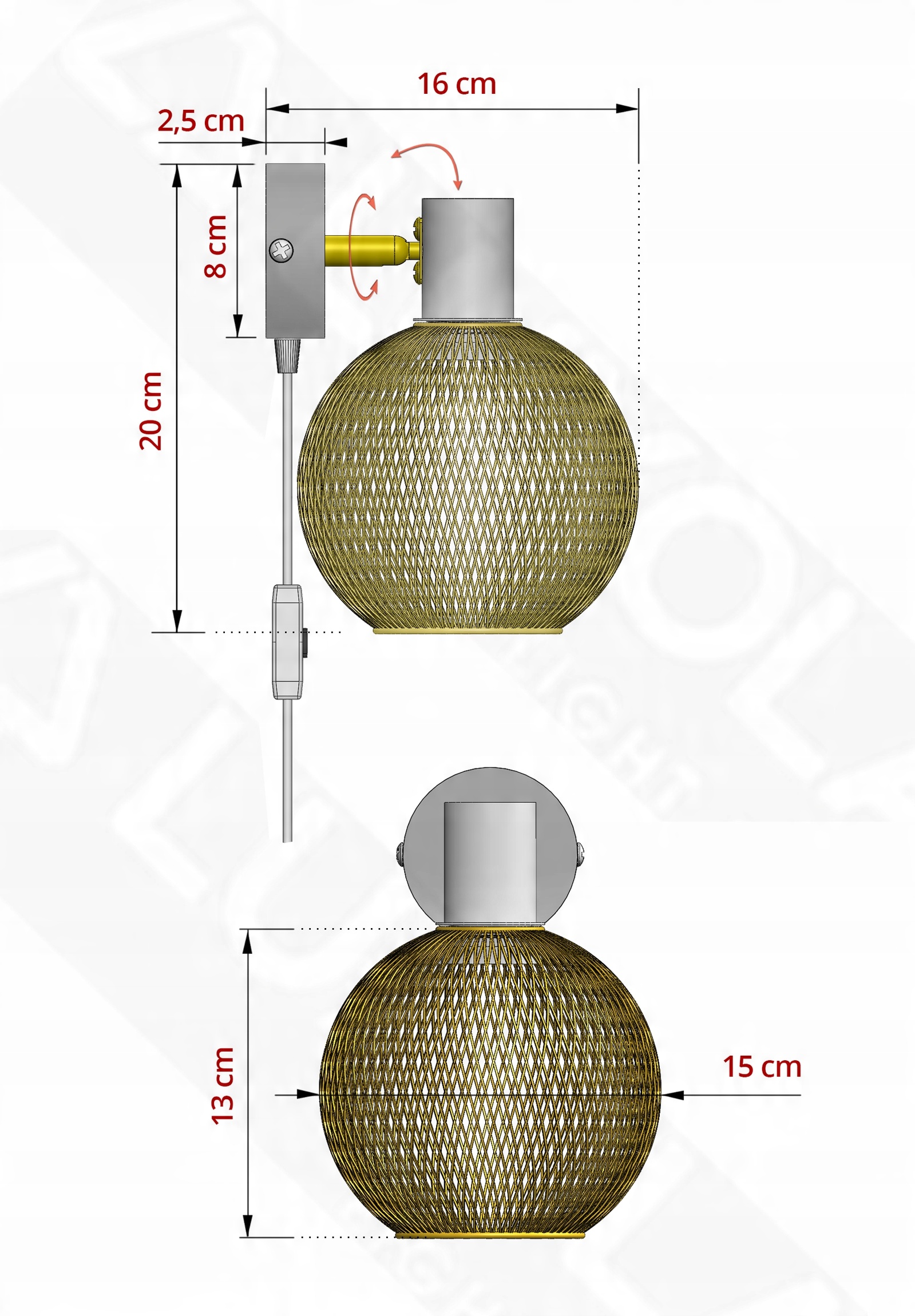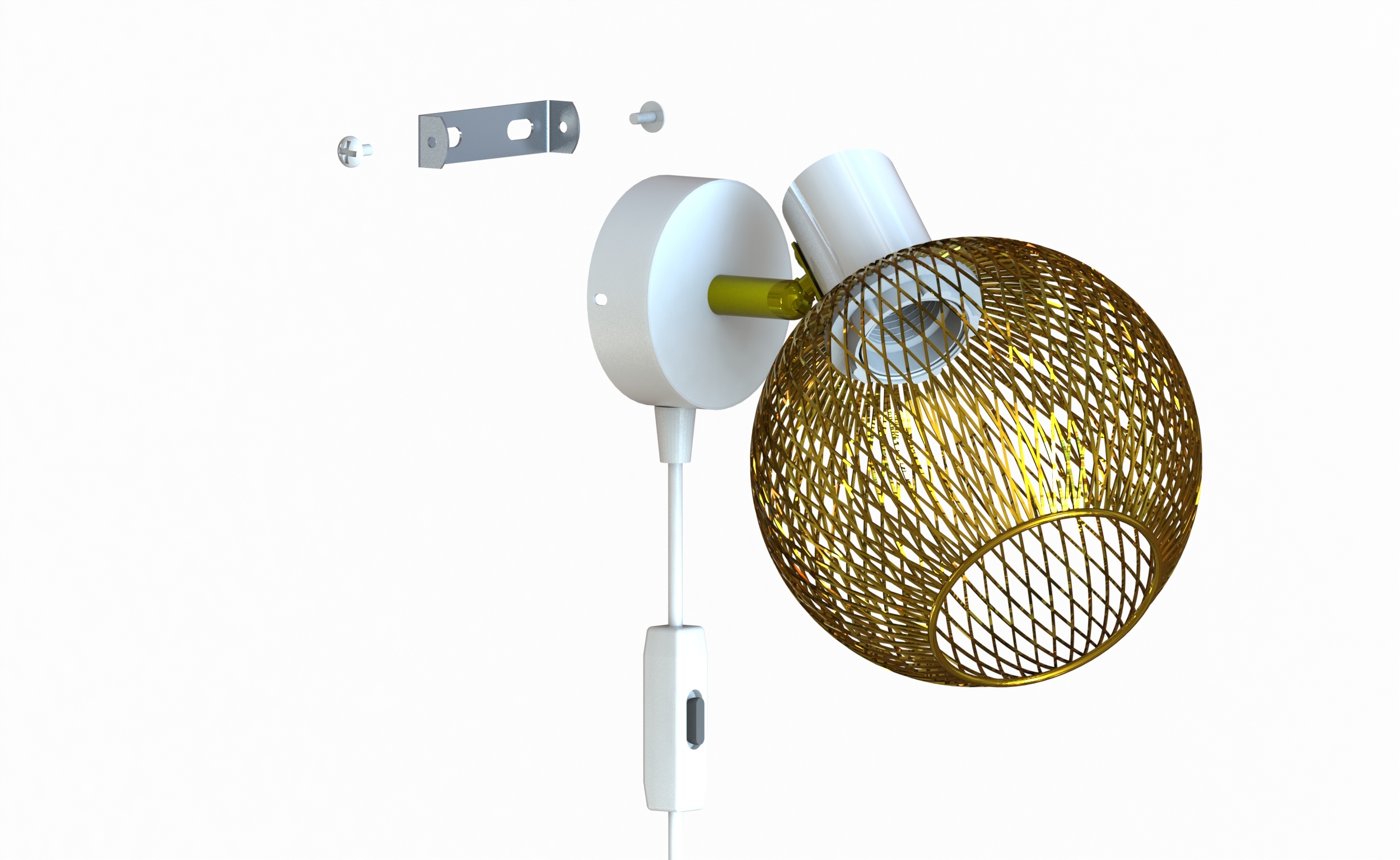 Kinkiet natynkowy, metalowy mający zastosowanie jako oświetlenie wewnętrzne z wyłączeniem miejsc o podwyższonej wilgotności.