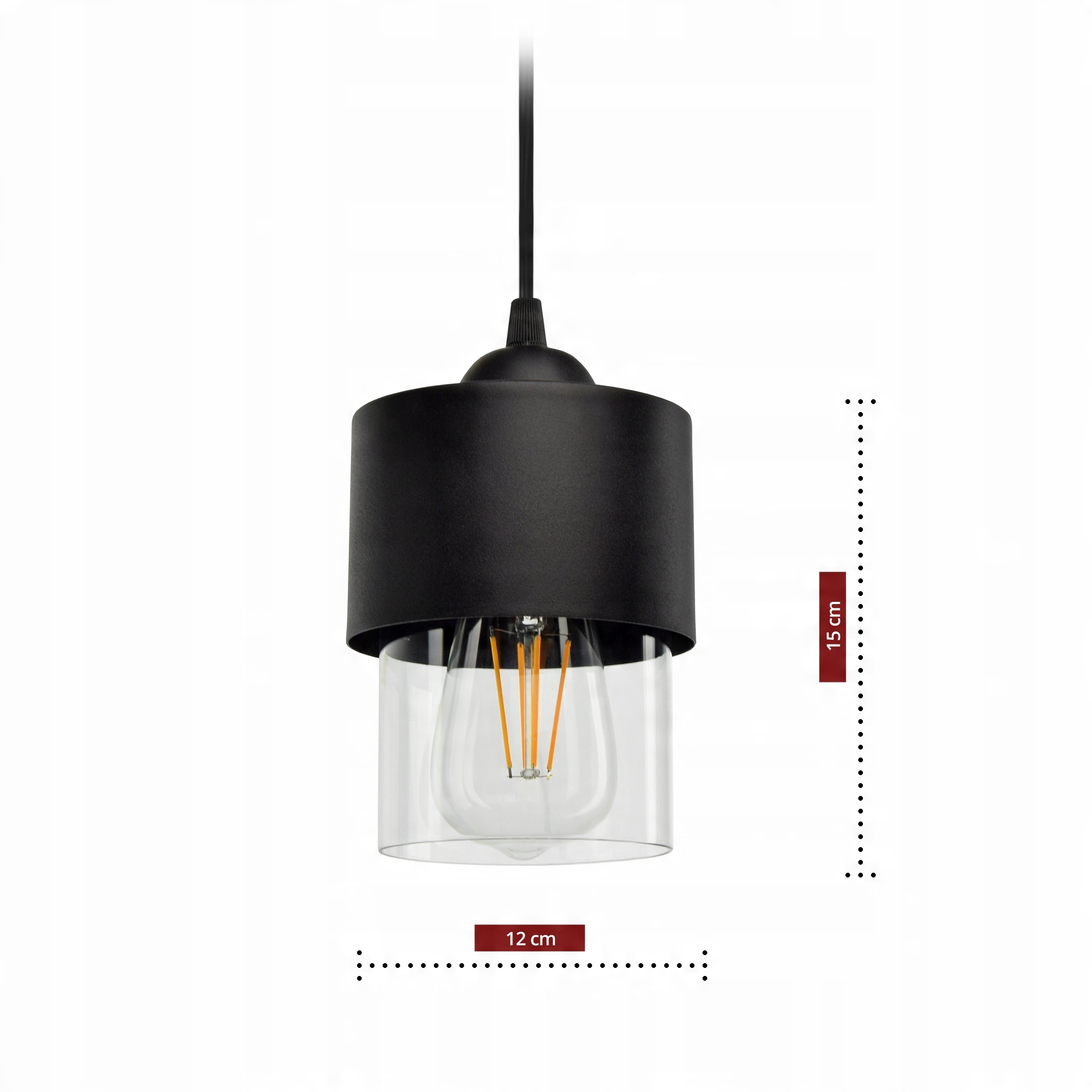 - Materiał klosza: Metal w kolorze Czarnym + Szkło w kolorze Transparentnym