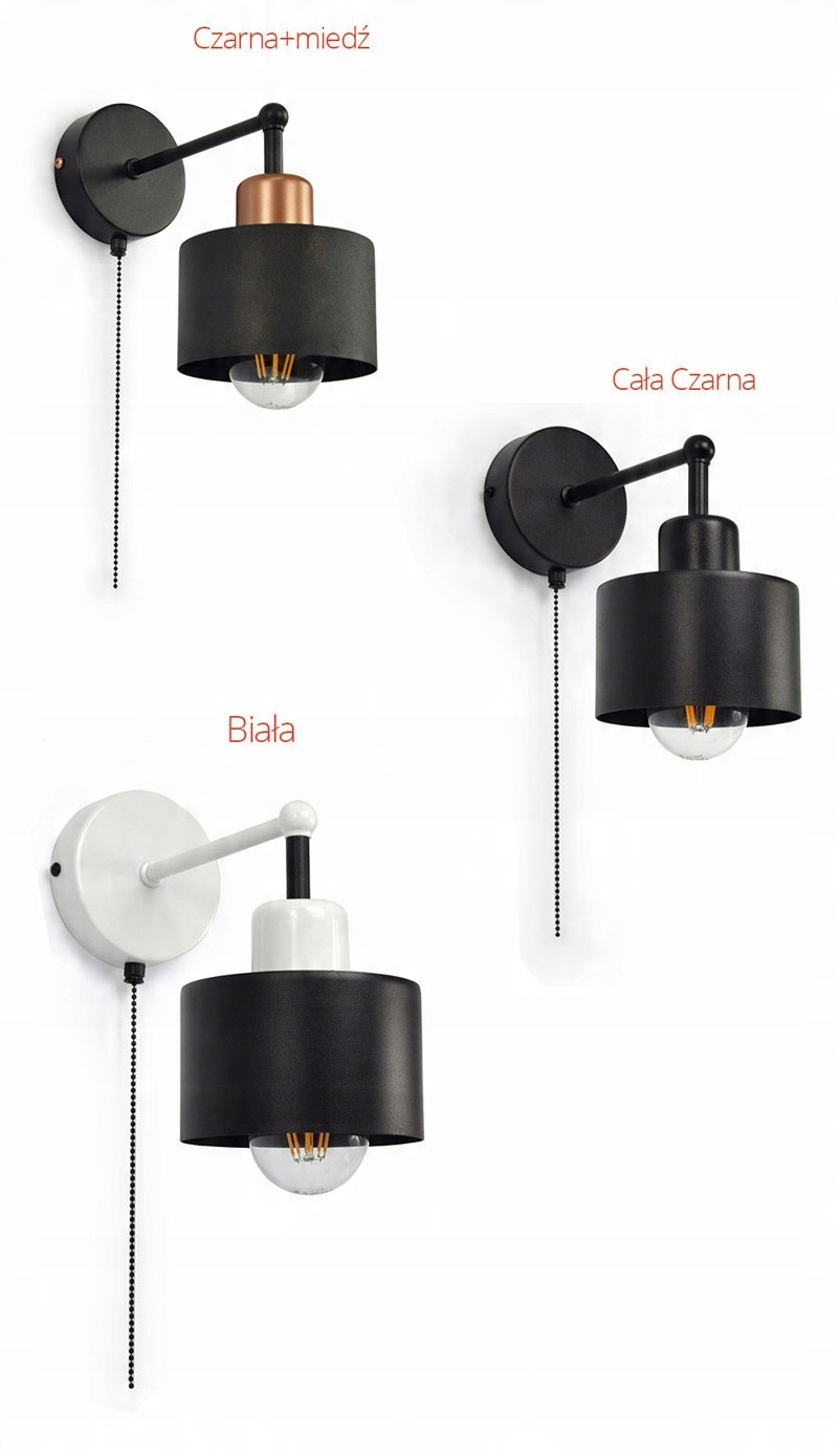 - Wybierz kolor lampy: Czarny + miedź, Cały Czarny , lub Biały