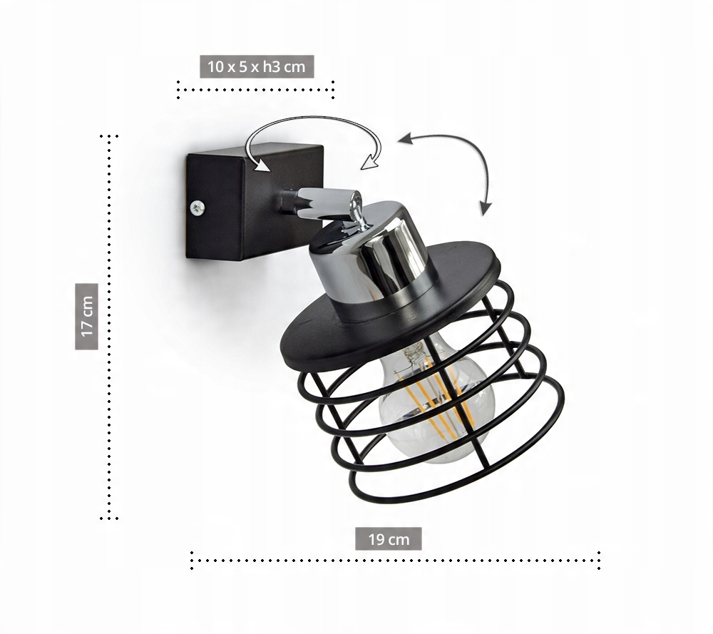 - Lampa obsługuje wszystkie żarówki z gwintem typu E27 do max 60 watów.