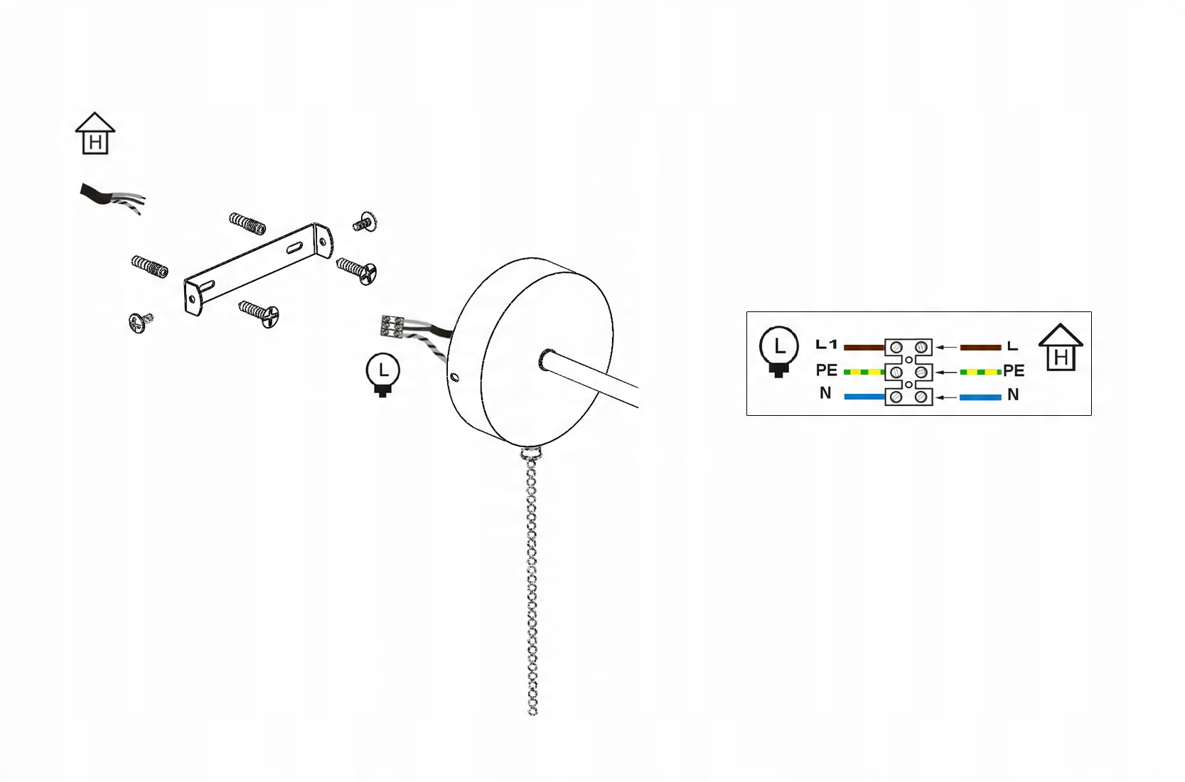 Zestaw nie zawiera żarówki ani kołków rozporowych (należy dobrać odpowiednie do ściany)