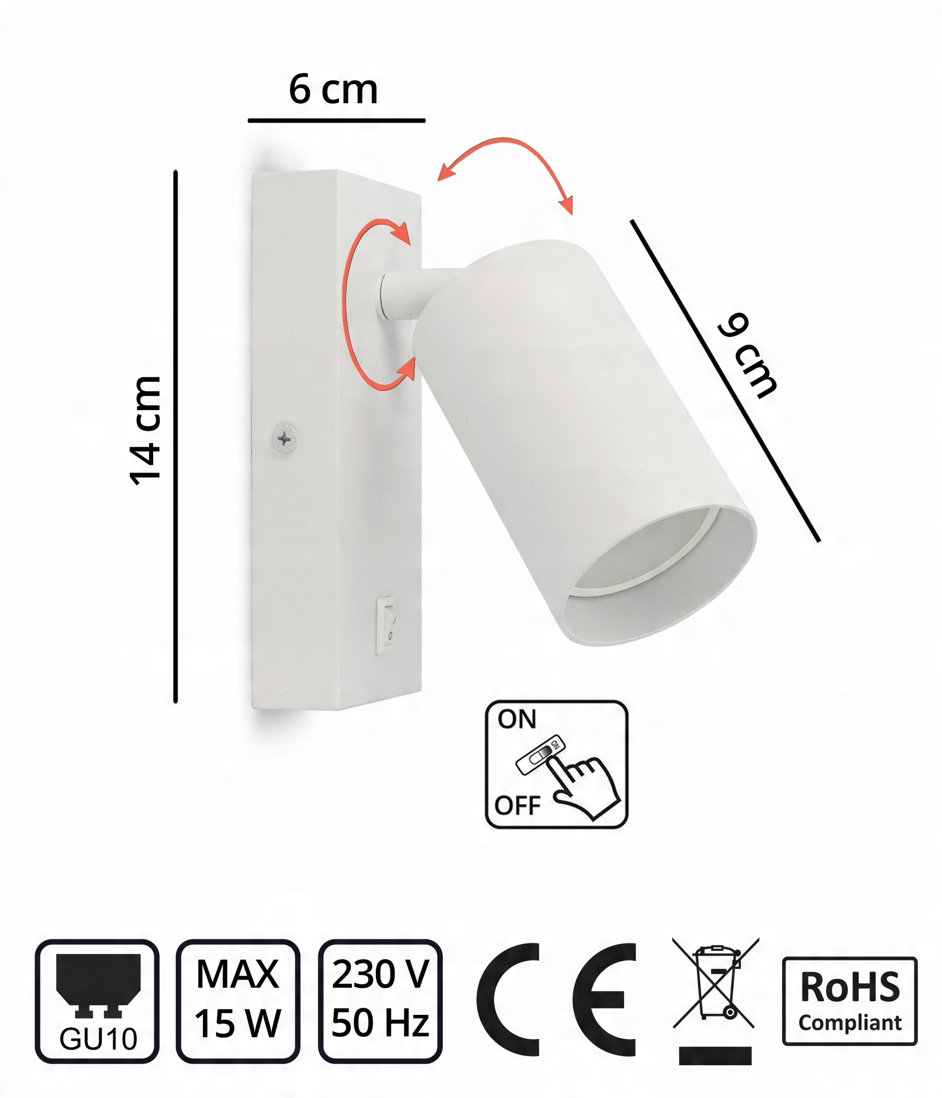 Lampa Ścienna Kinkiet z Włącznikiem Tuba Metal SPOT LED GU10 Biała