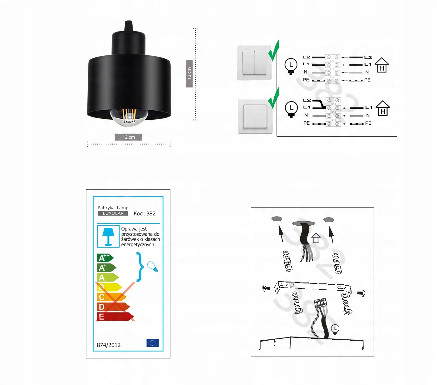 - Zestaw nie zawiera żarówek oraz kołków rozporowych do montażu