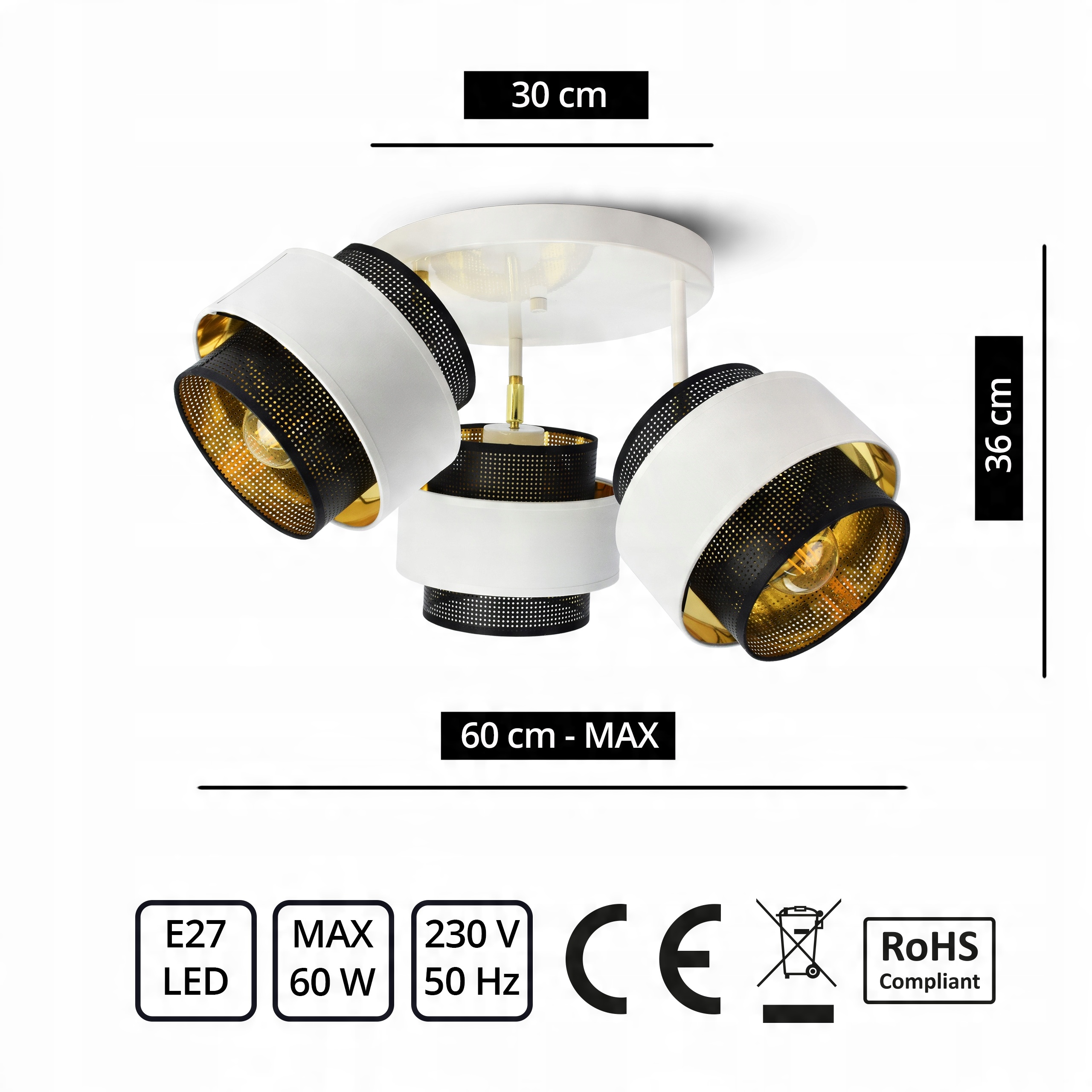 Zestaw nie zawiera żarówek, a także kołków rozporowych (należy dobrać odpowiednie do sufitu).
