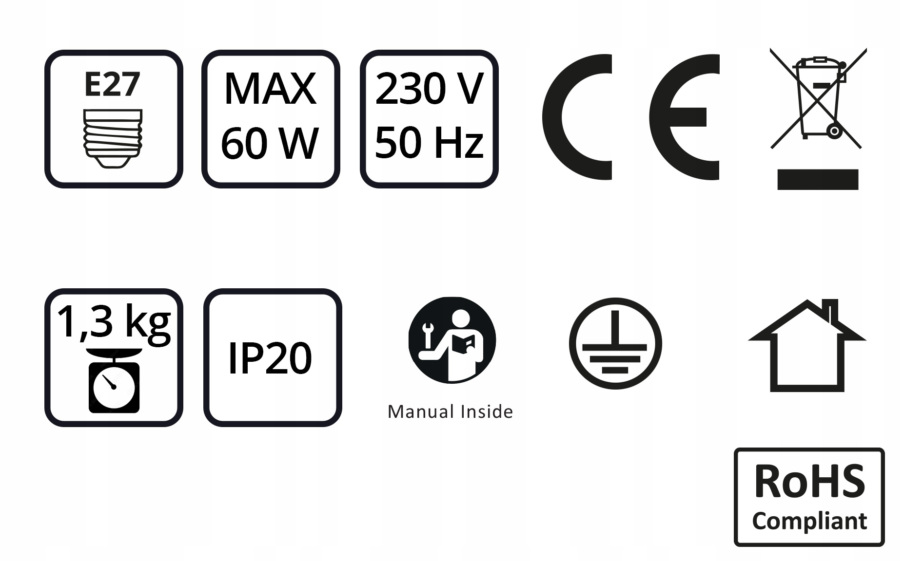 - Źródło światła: E27 LED do max 60W - wyłącznie LED