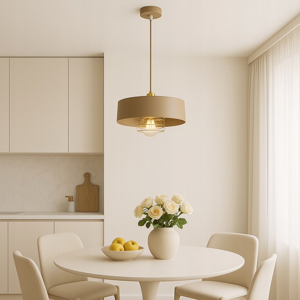 Lampa Sufitowa Wisząca Żyrandol Beżowa ECRU Złoto 1xE27 LED 760-EZ1-300